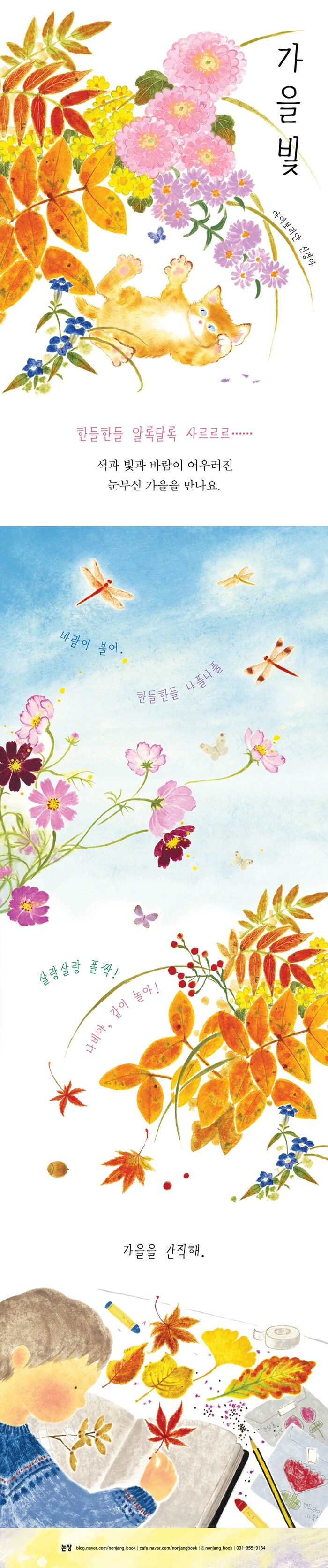 ¡¶°¡À»ºû¡·Àº ¿©¸§ºñÀÇ »ý¸í·Â ³ÑÄ¡´Â û·®ÇÔÀ» ³ë·¡ÇÑ Ã¹ ±×¸²Ã¥ ¡¶¿©¸§ºñ¡·¿¡ ÀÌÀº ¾ÆÀ̺¸¸®¾á ½Å°æ¾Æ ÀÛ°¡ÀÇ µÎ ¹øÂ° ±×¸²Ã¥ÀÌ´Ù. ¿À·§µ¿¾È ²É°ú ³ª¹«¿Í »õ¿Í ¿¸Å µî ÀÚ¿¬¿¡ ÁýÁßÇÑ ÀÛ°¡´Â °¡À» »ê°ú ½£»Ó¸¸ ¾Æ´Ï¶ó ÀÏ»óÀÇ Ãß¾ïÀ» µÇ»ì·Á °¡À»ºû°ú °¡À» »ö°ú ±â´Ù¸²À¸·Î ¿¸Å ¸Î´Â dz¼ºÇÑ °¡À»À» ¾Æ¸§´ä°Ô Àü´ÞÇÑ´Ù.