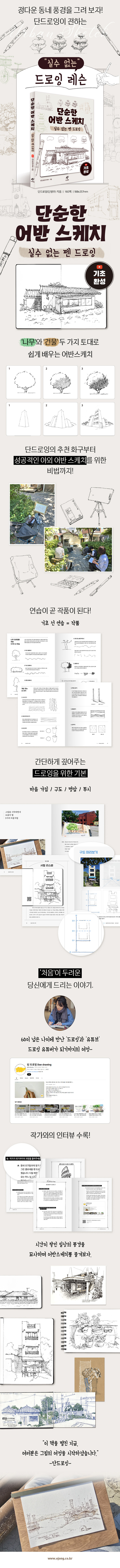 ´Üµå·ÎÀ×Àº ½ºÃÄ Áö³ªÄ¥ ¹ýÇÑ ¼Ò¹ÚÇÑ Ç³°æÀ» Á¤´Ù¿î ½Ã¼±À¸·Î Æ÷ÂøÇÏ´Â µ¥ Ź¿ùÇÏ´Ù. ¿À·¡µÈ ÀÌ¿ë¿ø, µ¿³× Ã¥¹æ, ³·Àº ´ãº¶ô °°Àº Àå¸éÀ» ³ëÆ®¿¡ ¿Å±â´Â °úÁ¤À» ´Ü°èº°·Î µû¶ó°¡ º¸ÀÚ. ±×¸²ÀÇ Ã¹ ´ÜÃ߸¦ ³¢¿ì±â ½±µµ·Ï °¢ dz°æ¸¶´Ù ¹Ì¸®º¸±â »çÁø¿¡´Â ´«³ôÀÌ¿Í ¼Ò½ÇÁ¡À», 1´Ü°è¿¡´Â º¸Á¶¼±À¸·Î ±¸µµ¸¦ Àâ´Â ¼ø¼¸¦ Ç¥½ÃÇß´Ù. °úÁ¤ Áß°£¿¡´Â ÀÛ°¡ÀÇ ±×¸² ÆÁ°ú ¸¶À½°¡ÁüÀ» ¼Ò°³Çϰí ÀÖ¾î ±×¸²ÀÇ ¿Ï¼ºµµ¸¦ ³ôÀÌ°í ½Ç·ÂÀ» Ű¿ì´Â µ¥ µµ¿òÀ» ÁØ´Ù. ´çÀå ³ëÆ®¿¡ ±×¸®±â°¡ ¾î·Æ´Ù¸é ¸¶Áö¸·¿¡ ¼ö·ÏµÈ Ưº° µµ¾È 5Á¡À¸·Î ºÎ´ã ¾øÀÌ ¿¬½ÀÇÒ ¼ö ÀÖ´Ù. ÀÌ Ã¥°ú ÇÔ²² Ææ µå·ÎÀ×ÀÇ ±âÃʸ¦ ´ÙÁö°í ¿ë±â¸¦ ¾ò¾î, ´ç½ÅÀÇ À̾߱Ⱑ ´ã±ä ¾î¹Ý ½ºÄÉÄ¡¸¦ Áñ°Ü º¸±â¸¦ ¹Ù¶õ´Ù.