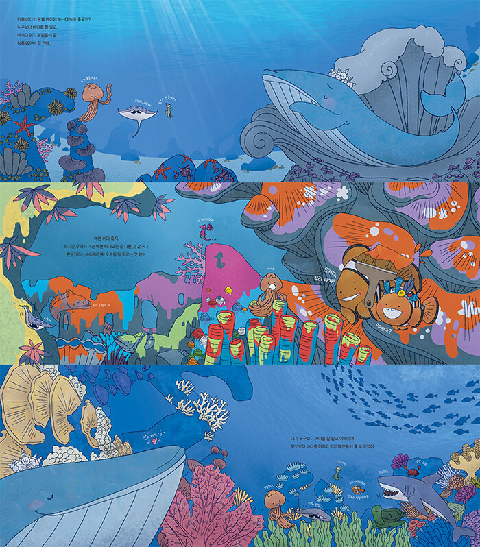 ¹Ù´Ù´Â ´Ù¾çÇÑ »ý¸íÀ» ǰ°í ÀÖ½À´Ï´Ù. ¹Ù´Ù°¡ ¹Ù´Ù´Ù¿ï ¼ö ÀÖ´Â °Ç, ±× ¾È¿¡ ¿©·¯ ºû±òÀÇ »ý¸íµéÀÌ Á¦ÀÚ¸®¿¡¼ ºûÀ» ³»°í Àֱ⠶§¹®ÀÏ °Ì´Ï´Ù. ¡º´ÙÀ½ ¹Ù´ÙÀÇ ¿ÕÀº ´©±¸?¡»´Â ³Ð°íµµ ±í°Ô À¯¿µÇÏ¸ç ±× »ý¸íÀÇ ºûÀ» À̹ÌÁö·Î ÆîÃijÀ´Ï´Ù. Ǫ¸¥ ¹Ù´Ù¿¡¼ ½ÃÀÛÇÏ¿© ÆäÀÌÁö¸¦ ³Ñ±æ ¶§¸¶´Ù Å©°í ÀÛÀº »ý¹°À» Çϳª¾¿ ´õÇÑ ±¸¼ºÀº ¿¹»óÄ¡ ¸øÇÑ »öä·Î °æÄèÇÑ ¸®µë°¨À» ¸¸µé¾î ³À´Ï´Ù. ÀÚ¿¬½º·¯¿î È£ÈíÀ¸·Î ´ÙÀ½¿£ ¾î¶² Ä£±¸¸¦ ¸¸³ª°Ô µÉ±î ±â´ë°¨À» ǰ°Ô ÇÏÁö¿ä. ÀÚÄ© ´Ã¾îÁú ¼ö ÀÖ´Â ±¸¼º¿¡ ¹èÄ¡µÈ ÀÇ¿ÜÀÇ ±ô¦ Ä£±¸µéÀº ÀÛ°¡¸¸ÀÇ À¯ÄèÇÑ »ó»óÀ» ¿³º¼ ¼ö ÀÖ°Ô ÇÕ´Ï´Ù. ¹Ù´Ù °÷°÷À» ´Ù°¢µµ·Î °¨°¢ÇÏ¸ç ¸¸³ª´Â dz°æÀº ½Ã°¢Àû Áñ°Å¿ò»Ó¸¸ ¾Æ´Ï¶ó »çÀ¯ÀÇ °¨°¢ ¶ÇÇÑ È®ÀåÇÕ´Ï´Ù. ¹Ù´Ù, ±× ¾È¿¡¼ °øÁ¸Çϸç ÈÇÕÇÏ´Â »ý¸íÀ» º¸¸ç ¿ì¸®°¡ »ì¾Æ°¡´Â ÀÌ ¼¼»óÀ» µ¡´ë¾î ±×·Á º¼ ¼ö ÀÖ½À´Ï´Ù.