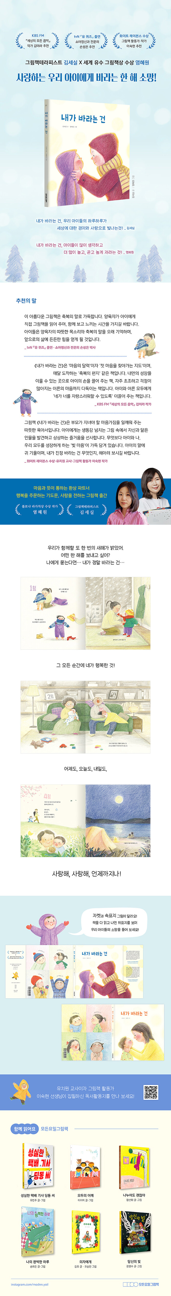 ±ÛÀ» ¾´ ±è¼¼½Ç ÀÛ°¡´Â ¿À·§µ¿¾È ¾Æµ¿ ½É¸®Ä¡·á»çÀÌÀÚ, ±×¸²Ã¥À¸·Î À°¾ÆÇÏ´Â ¹ýÀ» ¾Ë·Á ¿Â ±×¸²Ã¥Å×¶óÇǽºÆ®·Î, À̹ø ½ÅÀÛ ¶ÇÇÑ ±×¸²Ã¥À» ¸Å°³·Î ¾çÀ°ÀÚ¿Í ¾ÆÀ̰¡ Àû±ØÀûÀ¸·Î ÇÔ²² ¼ÒÅëÇϸç Á¤¼ÀûÀÎ ±³°¨À» ³ª´©µµ·Ï µ½´Â´Ù. ±×¸²Àº ÀÏ·¯½ºÆ®·¹ÀÌÅÍ ¿°Çý¿øÀÌ ¸Ã¾Ò´Ù. ¿°Çý¿ø ÀÛ°¡´Â º¼·Î³Ä ¶ó°¡Ä¡»ó, ¿¡Áî¶ó Àè ŰÃ÷»ó, º¸½ºÅÏ ±Û·Îºê È¥ºÏ»ó µî ¼¼°èÀûÀ¸·Î ±ÇÀ§ ÀÖ´Â »óÀ» ¼ö»óÇÑ Çѱ¹ÀÇ ´ëÇ¥ ÀÏ·¯½ºÆ®·¹ÀÌÅÍÀÌ´Ù. ¿°Çý¿ø ÀÛ°¡´Â ±Û°ú ±×¸²À» ¸ÚÁö°Ô ¿¬°áÇØ ¶Ç ÇÑ ¹øÀÇ »ç¶û½º·´°í ¸Å·ÂÀûÀÎ ¿°Çý¿øÇ¥ ¡¯ÇÏÀÌ ÄܼÁÆ® high-concept ±×¸²Ã¥¡®À» ¸¸µé¾ú´Ù.