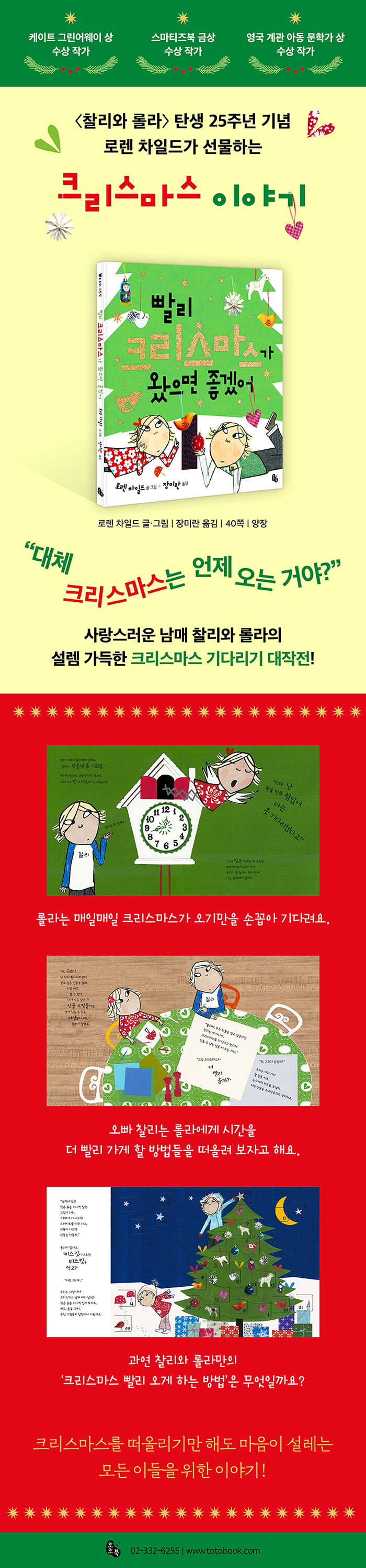 ¸Å ¼ø°£ Å©¸®½º¸¶½º¸¦ ±â´Ù¸®¸ç ¡®¾î¶»°Ô Çϸé Á¶±ÝÀÌ¶óµµ ´õ »¡¸® Å©¸®½º¸¶½º°¡ ¿Ã±î?¡¯ ¾È´ÞÇÏ´Â ¾î¸°ÀÌÀÇ ¸ð½ÀÀ» ¹ß¶öÇÏ°Ô ´ã¾Æ³½ ±×¸²Ã¥ ¡¶»¡¸® Å©¸®½º¸¶½º°¡ ¿ÔÀ¸¸é ÁÁ°Ú¾î¡·°¡ ÅäÅäºÏ¿¡¼ Ãâ°£µÇ¾ú½À´Ï´Ù. ¼¼°èÀûÀ¸·Î »ç¶û¹Þ´Â ÀÛ°¡ ·Î·» Â÷Àϵ尡 ¡´Âû¸®¿Í ·Ñ¶ó¡µ ½Ã¸®ÁîÀÇ Åº»ý 25ÁÖ³âÀ» ±â³äÇÏ¿© µ¶Àڵ鿡°Ô ÀüÇϴ Ưº°ÇÑ ¼±¹°ÀÌÁö¿ä. »ç¶û½º·¯¿î ³²¸Å Âû¸®¿Í ·Ñ¶óÀÇ ¼³·½ °¡µæÇϰí Áñ°Å¿î ¡®Å©¸®½º¸¶½º ±â´Ù¸®±â ´ëÀÛÀü¡¯¿¡ µ¶ÀÚ ¿©·¯ºÐÀ» ÃÊ´ëÇÕ´Ï´Ù.