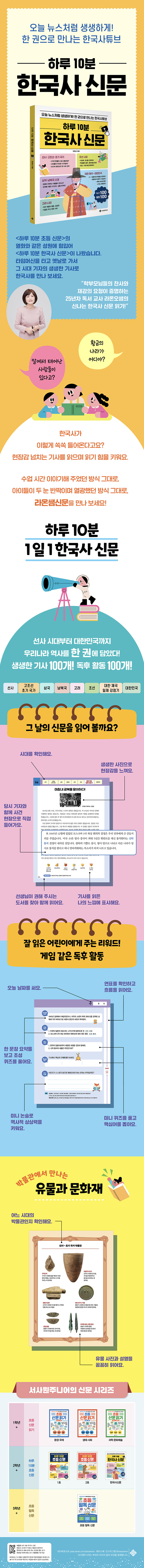 25³â µ¿¾È µ¶¼ ¼±»ý´ÔÀ¸·Î ¾ÆÀ̵é°ú Çкθð´ÔµéÀ» ¸¸³ª ¿Â ¶ó¿Â¿À½Ü ¿ÀÇö¼± ÀúÀÚ´Â ¼ö¾÷ Áß°£Áß°£ Ã¥ ³»¿ë°ú °ü·ÃµÈ ½Å¹® ±â»ç¸¦ Àаí À̾߱⸦ ³ª´©¾î ¿Ô½À´Ï´Ù. ½Å¹® Çü½ÄÀ» ¾î¸°À̵éÀÌ ÁÁ¾ÆÇϴµ¥, ±¸¼®±â¶ó¸é ±¸¼®±â ½Ã´ëÀÇ ±âÀÚó·³, Á¶¼± ½Ã´ë¶ó¸é Á¶¼± ½Ã´ë¸¦ »ç´Â ±âÀÚó·³ Çѱ¹»ç¸¦ ÇöÀå°¨ ÀÖ°Ô À̾߱âÇØÁÖ¸é ¾ó¸¶³ª Àç¹ÌÀÖÀ»±î¿ä? ±× ½Ã´ë¸¦ »ç´Â ±âÀÚÀÇ ÀÔÀå¿¡¼ ¾´ ¸¸¸¸ÇÑ ºÐ·®ÀÇ ±â»ç Çϳª¸¦ ¶Òµü! 10ºÐÀ̸é Àаí Çѱ¹»ç Áö½ÄÀ» ½×À» ¼ö ÀÖ½À´Ï´Ù. ±â»ç¸¶´Ù °¡º¿î µ¶ÈÄ È°µ¿À» ¼ö·ÏÇÏ¿© ÇϳªÀÇ ¿ª»ç »ç°ÇÀ» ¸Ó¸´¼Ó¿¡ Á¤¸®Çϰí, °Å´ëÇÑ ¿ª»ç È帧 ¼ÓÀÇ À§Ä¡¸¦ ÀÎÁöÇÒ ¼ö ÀÖµµ·Ï ½Å°æ ½è½À´Ï´Ù.