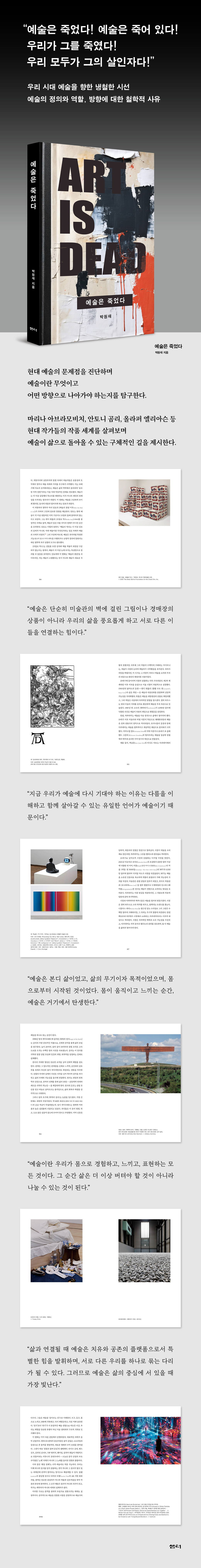 ÀÌ Ã¥Àº ¿¹¼úÀº Á×¾ú´Ù´Â ¼±¾ðÀ¸·Î ½ÃÀÛÇÏÁö¸¸, ¿À´Ã³¯ÀÇ ¿¹¼ú¿¡ ´ëÇÑ ºÎÁ¤ÀûÀÎ ºñÆÇ¿¡¸¸ ¸Ó¹°Áö ¾Ê´Â´Ù. ¿¹¼úÀÇ Á×À½À» ÀνÄÇÏ´Â °ÍÀº °ð »õ·Î¿î ¿¹¼úÀÇ °¡´É¼ºÀ» ¸ð»öÇϴ ù°ÉÀ½ÀÌ µÉ ¼ö Àֱ⠶§¹®ÀÌ´Ù. ÀÌ ½Ã´ë ¿¹¼úÀÇ ¹®Á¦Á¡À» Áø´ÜÇÏ¸ç ¿¹¼úÀ̶õ ¹«¾ùÀÌ°í ¾î¶² ¿ªÇÒÀ» ÇÏ´ÂÁö, ±×·¡¼ ¾î¶² ¹æÇâÀ¸·Î ³ª¾Æ°¡¾ß ÇÏ´ÂÁö¸¦ ¼ºÂûÇÏ´Â ÀÌ Ã¥Àº, ¼·Î ³Ê¹«³ªµµ ´Ù¸¥ ¿ì¸®°¡ ¿¹¼úÀ» ÅëÇØ »îÀ» °øÀ¯ÇÏ°í ¼ÒÅëÇÏ¸ç °øÁ¸ÇÒ ¼ö ÀÖ´Â °¡´É¼ºÀ» Á¦½ÃÇÑ´Ù.