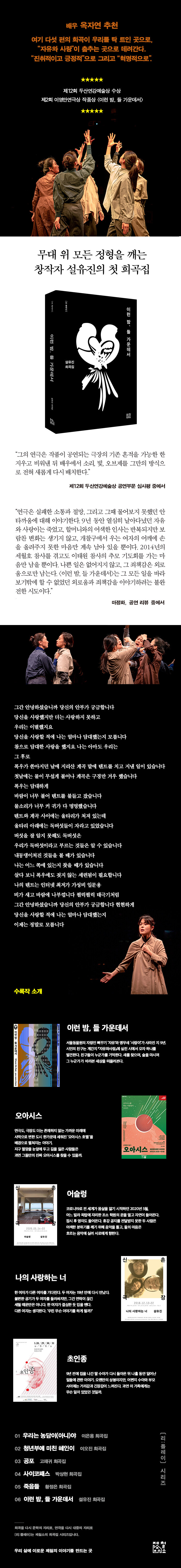 Ã¥ÀÇ Ç¥Á¦ÀÛÀÎ ¡¸ÀÌ·± ¹ã, µé °¡¿îµ¥¼¡¹´Â 2023³â µÎ»ê¾ÆÆ®¼¾ÅÍ ¹«´ë¿¡ ¿Ã¶ó °ü°´µéÀÇ ¸¶À½À» »ç·ÎÀâÀº ÀÛǰÀÌ´Ù. ƯÈ÷ Áö³ÇØ¿¡´Â ¡°Âü»ç¸¦ Áö³ª´Â ¸¶À½À» ¼¼¹ÐÇÏ°Ô ´õµëÀ¸¸ç ±× ÀÌÈÄ¿¡µµ À̾îÁö´Â ´ÙÁ¤ÇÑ ¸¶À½µé, ƯÈ÷ ÀÚÀ¯¿Í »ç¶ûÀÇ °¡Ä¡¸¦ ´ã¾Ò´Ù¡±¶ó´Â Æò°ú ÇÔ²² Á¦2ȸ ÀÌ¿µ¸¸¿¬±Ø»ó ÀÛǰ»óÀ» ¹ÞÀ¸¸ç ´Ù½Ã ÇÑ ¹ø ±× °¡Ä¡¸¦ ÀÎÁ¤¹Þ¾Ò´Ù.