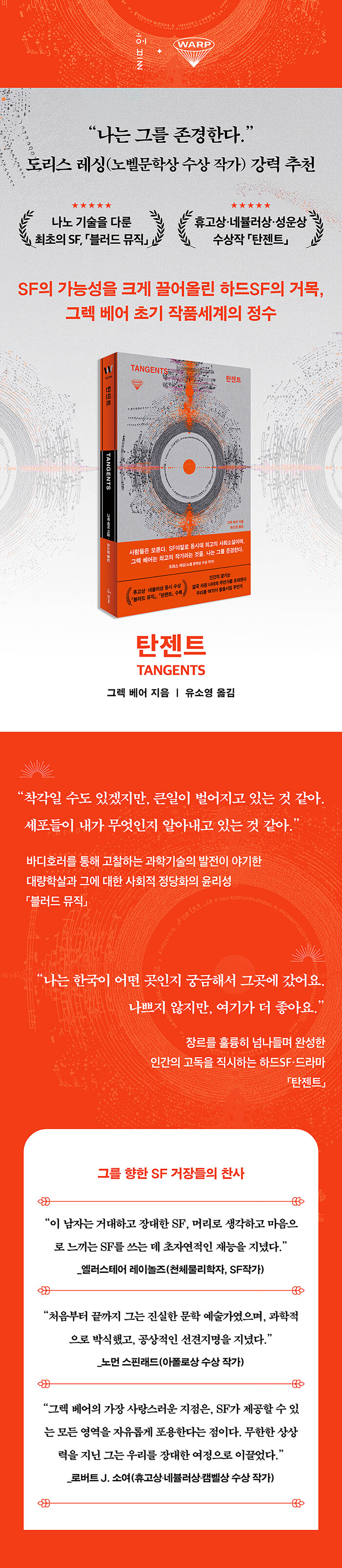 ¡°±×·º º£¾îÀÇ °¡Àå »ç¶û½º·¯¿î ÁöÁ¡Àº SF°¡ Á¦°øÇÒ ¼ö ÀÖ´Â ¸ðµç ¿µ¿ªÀ» ÀÚÀ¯·Ó°Ô Æ÷¿ëÇÑ´Ù´Â Á¡ÀÌ´Ù. ¹«ÇÑÇÑ »ó»ó·ÂÀ» Áö´Ñ ±×´Â ¿ì¸®¸¦ Àå´ëÇÑ ¿©Á¤À¸·Î À̲ø¾ú´Ù.¡±_·Î¹öÆ® J. ¼Ò¿©(ÈÞ°í»ó, ³×ºæ·¯»ó, Äͺ§»ó ¼ö»ó ÀÛ°¡)
