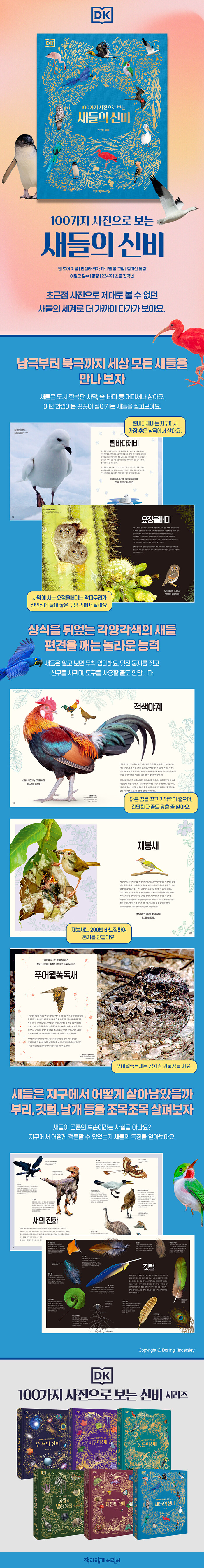 ÀÌ Ã¥Àº ¹é°ú»çÀüÀÇ ¸í°¡ÀÎ ¿µ±¹ µ¹¸µÅ²´õ½½¸®(DK) ÃâÆÇ»ç°¡ ¼±º¸ÀÌ´Â ¡®½ºÅ丮ºÏ ½ºÅ¸ÀÏ¡¯·Î ±¸¼ºµÇ¾î ÀÖ´Ù. Å©°í ÀÛÀº »çÁøµé°ú ±ä ¼³¸í±Û·Î °¡µæÇß´ø ÀüÅëÀû ¹é°ú»çÀü Çü½Ä¿¡¼ ¹þ¾î³ª, ¾Æ¸§´Ù¿î »çÁøÀ¸·Î Áö¸éÀ» °¡µæ ä¿ì°í °¨¼ºÀ» ´õÇÑ À̾߱âµéÀ» µé·ÁÁÖ´Â »ö´Ù¸¥ ¹æ¹ýÀ» ÃëÇß´Ù. Ã¥ÀÇ ³»¿ë¸¸Å ÀåÁ¤µµ ±Ù»çÇÏ´Ù. ±Ý¹ÚÀ» ÀÔÈù ¸ðµç ÆäÀÌÁöÀÇ °¡ÀåÀÚ¸®´Â °í±Þ½º·¯¿î ´À³¦À» ÁÖ¸ç ¼ÒÀå¿ëÀ̳ª ¼±¹°¿ëÀ¸·Îµµ ¼Õ»ö¾ø´Ù. Ã¥°úÇÔ²²¾î¸°ÀÌ´Â DKÀÇ ÀÌ Ã¥µéÀ» ¡®100°¡Áö »çÁøÀ¸·Î º¸´Â ½Åºñ¡¯ ½Ã¸®Áî·Î Ãâ°£Çϰí ÀÖ´Ù. ¾î¸°ÀÌ °úÇÐ ºÐ¾ß º£½ºÆ®¼¿·¯ ¡¶¿ìÁÖÀÇ ½Åºñ¡·, ¡¶Áö±¸ÀÇ ½Åºñ¡·, ¡¶µ¿¹°ÀÇ ½Åºñ¡·, ¡¶°ø·æ°ú ¸êÁ¾ »ý¹°¡·, ¡¶ÀÚ¿¬ÀÇ ½Åºñ¡·¿¡ ÀÌ¾î ¿©¼¸ ¹øÂ°·Î ¡¶»õµéÀÇ ½Åºñ¡·°¡ Ãâ°£µÇ¾ú°í, °è¼Ó Çѱ¹¾îÆÇÀ» Æì³¾ ¿¹Á¤ÀÌ´Ù.