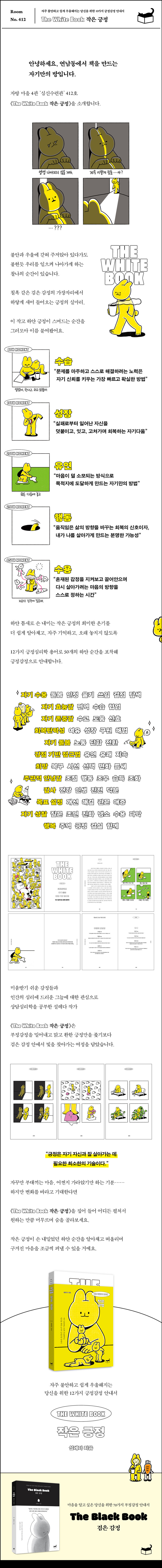 Àΰ£ ³»¸éÀÇ ¾îµÒÀ» Á÷½ÃÇÏ¸ç ¡®°¨Á¤À» ¿Ü¸éÇÏÁö ¾Ê´Â ¹ý¡¯À» ¾Ë·ÁÁØ ¡¶The Black Book °ËÀº °¨Á¤¡·ÀÇ ÀÛ°¡ ¼³·¹´ÙÀÇ ½ÅÀÛ ¡¶The White Book ÀÛÀº ±àÁ¤¡·. ¾îµÒÀÇ °¡ÀåÀÚ¸®¿¡¼ ÇϾé°Ô »õ¾î µé¾î¿À´Â ȸº¹ÀÇ ºûÀ» Æ÷ÂøÇÑ 50°³ ¼ø°£À¸·Î ¡®°¨Á¤ÀÇ ±ÕÇüÀ» ¸ÂÃß´Â ¹ý¡¯À» À̾߱âÇÑ´Ù. ¹Ì¿ò¹Þ±â ½¬¿î °¨Á¤µé°ú Àΰ£ ½É¸®¿¡ µå¸®¿î ±×´ÃÀ» ¿À·¡ ޱ¸Çؿ ¼³·¹´Ù ÀÛ°¡´Â ¼¼°è¸¦ È®ÀåÇØ ¡®ºÎÁ¤°¨Á¤¡¯À» °¨½Î¾È°í ³ª¾Æ°¡´Â 12°¡Áö ¡®±àÁ¤°¨Á¤¡¯À¸·Î ¿ì¸®¸¦ ¾È³»ÇÑ´Ù.