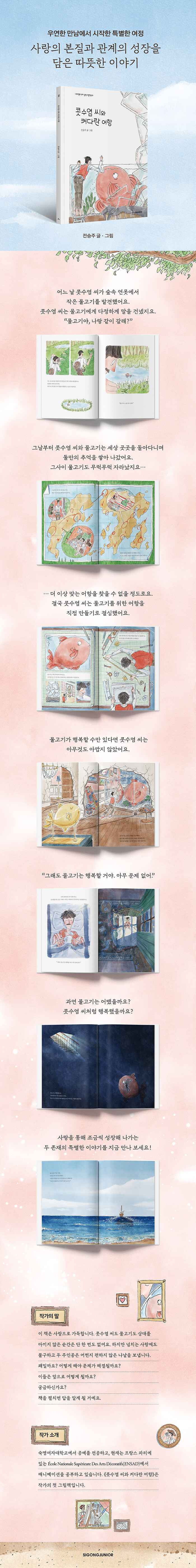¼÷¸í¿©ÀÚ´ëÇб³¿¡¼ °ø¿¹¸¦ Àü°øÇϰí, ÇöÀç´Â ÆÄ¸® Ecole Nationale Superieure des Arts Decoratifs(ENSAD)¿¡¼ ¾Ö´Ï¸ÞÀ̼ÇÀ» °øºÎ ÁßÀÎ Àü½ÂÁÖ ÀÛ°¡´Â ¡°Ã¢ÀÛÇÏ´Â ¼ø°£¸¸ÅÀº ¼¼»óÀ» ¸¶ÁÖÇØ¾ß ÇÏ´Â ÀÌÀ¯°¡ ¼±¸íÇØÁø´Ù.¡±°í ¸»ÇÑ´Ù. ¡¶Äà¼ö¿° ¾¾¿Í Ä¿´Ù¶õ ¾îÇס·Àº ±×·± ±×ÀÇ Ã¢ÀÛ Ã¶ÇÐÀÌ °í½º¶õÈ÷ ´ã±ä ÀÛǰÀÌ´Ù. ¾î¸° ½ÃÀý, À¯³È÷ ¸öÀÌ ¾àÇß´ø ÀÚ½ÅÀ» À§ÇØ Çå½ÅÀ» ¾Æ³¢Áö ¾Ê¾Ò´ø ºÎ¸ð´ÔÀ» ¶°¿Ã¸®¸ç ÀÌ Ã¥À» ¸¸µé¾ú´Ù´Â ÀÛ°¡´Â À̾߱⠼ӿ¡¼ ¹°°í±â°¡ Äà¼ö¿° ¾¾ÀÇ º¸È£¿Í ±×´ÃÀ» ¹þ¾î³ª ÀڽŸ¸ÀÇ ¸ðÇèÀ» ¶°³ª´Â Àå¸éÀ» ÅëÇØ ºÎ¸ðÀÇ ¹«ÇÑÇÑ »ç¶û°ú ¹è·Á ¼Ó¿¡¼ ÀÚ¶ó³ ÀÚ½ÅÀÌ ÀÌÁ¦´Â µ¶¸³µÈ Á¸Àç·Î ¼¼»ó°ú ¸¶ÁÖÇÏ°Ô µÇ¾úÀ½À» »ó¡ÀûÀ¸·Î Ç¥ÇöÇß´Ù. ÀÌ·¯ÇÑ ÁøÁ¤¼º ´öºÐ¿¡ µ¶ÀÚµéÀº À̾߱⿡ ´õ¿í ±íÀÌ °ø°¨Çϸç, Àú¸¶´ÙÀÇ ¼ºÀå°ú »ç¶ûÀÇ ±â¾ïÀ» ÀÚ¿¬½º·´°Ô ¶°¿Ã¸± ¼ö ÀÖ´Ù. Àü½ÂÁÖ ÀÛ°¡´Â ¼¶¼¼Çϸ鼵µ ´ë´ãÇÑ »öä, ºÎµå·´Áö¸¸ ´Ü´ÜÇÑ ¼±À¸·Î Àι°µéÀÇ °¨Á¤À» ½Ã°¢ÀûÀ¸·Î ±¸ÇöÇÑ´Ù. ƯÈ÷ ¹°°í±â°¡ ¼ºÀåÇÔ¿¡ µû¶ó ȸéÀÌ È®ÀåµÇ´Â ¿¬ÃâÀº °ü°èÀÇ º¯È¸¦ °ø°£ÀûÀ¸·Î üÇèÇÏ°Ô ¸¸µå´Â ÀåÄ¡·Î ÀÛ¿ëÇÑ´Ù. ÀÌ´Â ´Ü¼øÇÑ ½Ã°¢Àû Áñ°Å¿òÀ» ³Ñ¾î, ¡®Äà¼ö¿° ¾¾¿Í ¹°°í±âÀÇ °ü°è°¡ Àڶ󳪴 ¼ø°£¡¯À» ±×¸²À¸·Î °æÇèÇÏ°Ô Çϸç, ¸¶Ä¡ µ¶ÀÚ Àڽŵµ ±× µû¶æÇÑ °ü°è ¼Ó¿¡ ÇÔ²² ¼û ½¬´Â µíÇÑ °¨Á¤À» ´À³¢°Ô ÇÑ´Ù.
