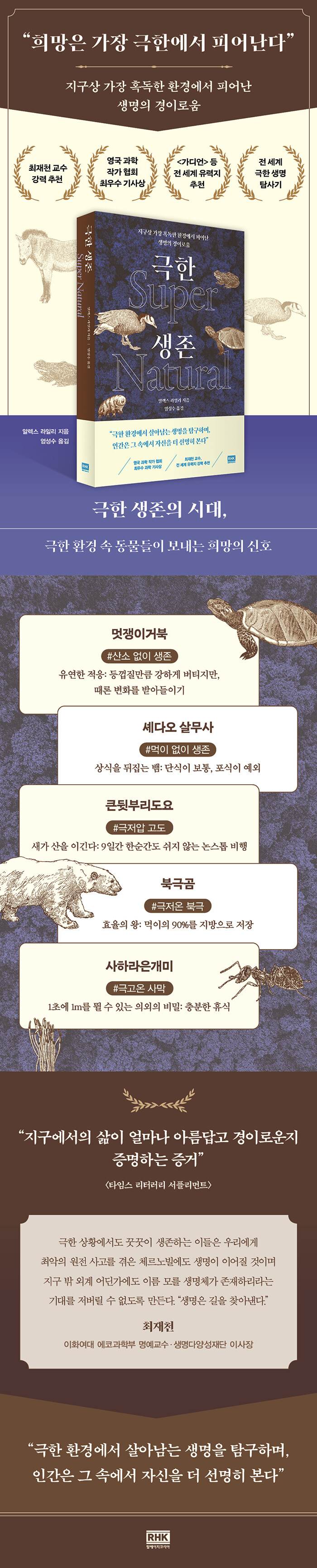 ¡º±ØÇÑ »ýÁ¸¡»Àº ¿µ±¹ ÃÖ¿ì¼ö °úÇÐ ±â»ç»óÀ» ¼ö»óÇÑ °úÇÐ ÀÛ°¡ ¾Ë·º½º ¶óÀϸ®°¡ Àü ¼¼°è ±ØÇÑ È¯°æÀÇ »ý¸íµéÀ» ¸¸³ª¸ç ޱ¸ÇÑ ±â·ÏÀÌ´Ù. [°¡µð¾ð]°ú ¼¼°èÀûÀÎ ¼Æò Àü¹®Áö [ŸÀÓ½º ¸®ÅÍ·¯¸® ¼Çø®¸ÕÆ®] ¹× ´Ù¼ö °úÇÐ Àü¹® ¸ÅüµéÀÌ ¡°Å¹¿ùÇÏ´Ù¡±¸ç ÁÖ¸ñÇß´Ù. ¶ÇÇÑ ÀÌÈ¿©´ë ¿¡ÄÚ°úÇкΠÃÖÀçõ ¸í¿¹±³¼ö´Â ¡°Ã¼¸£³ëºô¿¡µµ »ý¸íÀÌ À̾îÁú °ÍÀ̸ç Áö±¸ ¹Û ¿Ü°è ¾îµò°¡¿¡µµ À̸§ ¸ð¸¦ »ý¸íü°¡ Á¸ÀçÇϸ®¶ó´Â ±â´ë¸¦ Àú¹ö¸± ¼ö ¾øµµ·Ï ¸¸µç´Ù¡±¸ç ÃßõÀ» ³²°å´Ù.
