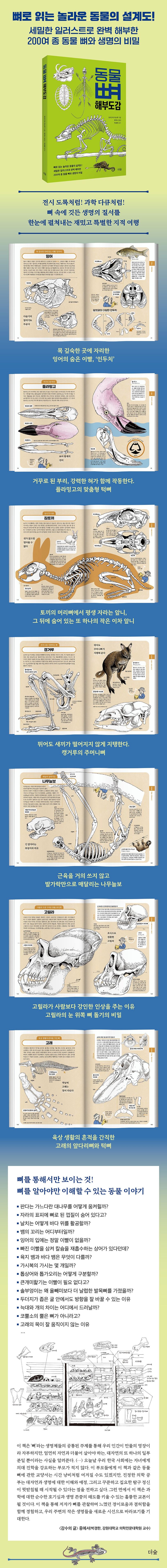 ÀÌ Ã¥¿¡¼ º»°ÝÀûÀ¸·Î ´Ù·ç´Â 200¿© Á¾ µ¿¹°ÀÇ »À´Â ´Ü¼øÇÑ ÇüŸ¦ ³Ñ¾î, »ý¹°ÀÇ »î°ú Ư¡À» Àо´Â Áú¹®µéÀ» À̲ø¾î³½´Ù. ¹ìÀÇ ²¿¸®´Â ¾îµðºÎÅÍÀϱî? ¿Ö ŸÁ¶´Â ¹ß°¡¶ôÀÌ µÎ °³»ÓÀϱî? µÎ´õÁö´Â Á¼Àº ±¼ ¾È¿¡¼ ¾î¶»°Ô ¹æÇâÀ» Àß ¹Ù²Ù´Â °ÍÀϱî? ¼ÖºÎ¾ûÀÌ´Â ¿Ö ¿Ã»©¹Ìº¸´Ù ´õ ³¯·ÆÇÑ ¹ß¸ñ»À¸¦ °¡Á³À»±î? ÀÚ¶óÀÇ ²®µ¥±â ¼Ó »À´Â ¾î¶² °úÁ¤À» °ÅÃÄ ¸¸µé¾îÁ³À»±î? ÀÌ·¯ÇÑ Áú¹®µéÀº ±×¸²À» ÅëÇØ µ¿¹°¿¡ ´ëÇÑ È£±â½ÉÀ» ÀÚ±ØÇÏ´Â µ¥¼ ±×Ä¡Áö ¾Ê°í, »À¸¦ ÅëÇØ »ý¹°ÀÇ ÁøÈ ÈçÀû°ú »ýÁ¸ Àü·«À» »õ·Ó°í ÀÔüÀûÀ¸·Î ÀÌÇØÇÏ°Ô ÇÑ´Ù.