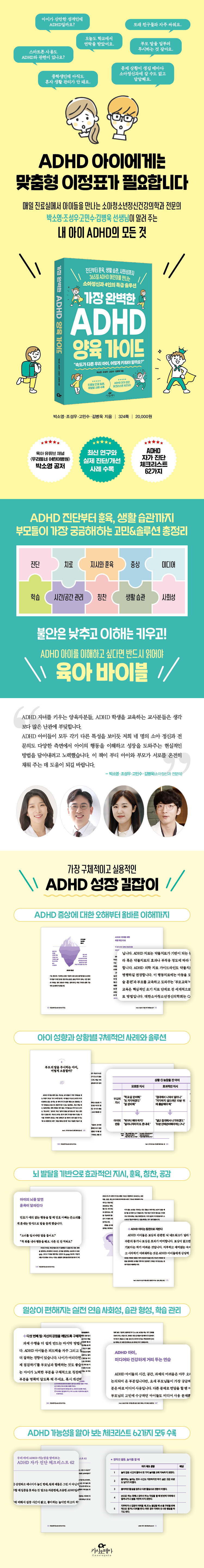 ÃÖ±Ù ADHD Áø·á¸¦ ¹Þ´Â ¾ÆÀ̵éÀÌ ºü¸£°Ô Áõ°¡Çϰí ÀÖ´Ù. 2024³â ±âÁØ, ±¹³» ADHD Áø·á ÀοøÀº 12¸¸ ¸íÀ» ³Ñ¾ú´Ù. ÇÑ Çб޿¡ ÇѵΠ¸í ÀÖÀ» Á¤µµ·Î ADHD ¾ÆÀ̸¦ Ű¿ì´Â ºÎ¸ðµéÀº ¸ÅÀÏ ¼ö¸¹Àº °í¹ÎÀ» ¸¶ÁÖÇÑ´Ù. ¸·¸·ÇÏ°í ºÒ¾ÈÇÑ ¸¶À½À» ǰÀº ºÎ¸ðµéÀÌ ±×¸¸Å ¸¹´Ù´Â ¶æÀÌ´Ù. ¸ØÃßÁö ¾Ê´Â ¿¡³ÊÀÚÀÌÀú °°Àº ¾ÆÀÌ, ´Ù¸¥ Ä£±¸ÀÇ ¸»À» µèÁö ¾Ê´Â °íÁý½º·¯¿î ¾ÆÀÌ, ºÎ¸ð ¸»À» ¹«½ÃÇÏ´Â ¾ÆÀÌ, ÀܼҸ®Çصµ ¾à¼ÓÀ» ¾î±â´Â ¾ÆÀÌ, ¸»½Î¿ò¿¡¼ ¹«Á¶°Ç À̱â·Á´Â ¾ÆÀÌ¡¦¡¦. ¶Ç·¡ »çÀÌ¿¡¼ À¯´Þ¸® ´«¿¡ ¶ç´Â ¸ð½ÀÀ» ÀÌÇØÇÏ´Â ADHD Á¾ÇÕ °¡À̵尡 µåµð¾î ³ª¿Ô´Ù. ¼Ò¾ÆÁ¤½Å°ú ÀÇ»ç·Î 356ÀÏ ADHD ¾ÆÀ̵éÀ» Áø´ÜÇϰí Ä¡·áÇÏ´Â ³× ¸íÀÇ ÀúÀÚ´Â ADHD´Â ¾ÆÀÌÀÇ ÇѰ谡 ¾Æ´Ï¶ó°í ¸»ÇÑ´Ù. ¿Ã¹Ù¸¥ ÀÌÇØ¿Í ÁöÁö°¡ ÀÖ´Ù¸é ¾ÆÀÌ´Â ÀÚ½ÅÀÇ ¹æ½ÄÀ¸·Î ºû³¯ ¼ö ÀÖ´Ù. ¡¶°¡Àå ¿Ïº®ÇÑ ADHD ¾çÀ° °¡À̵塷´Â ADHD ¾ÆÀ̵éÀÇ ´«³ôÀÌ¿¡¼ ¡®°¡Àå ÇÊ¿äÇÑ °Í¡¯À» ¾Ë·ÁÁִ åÀÌ´Ù. ADHD¶ó´Â Áø´Ü¸íÀº ÇϳªÀÌÁö¸¸ ¾ÆÀ̵éÀÇ ¸ð½ÀÀº ¸ðµÎ ´Ù¸£´Ù. ´ëÇ¥ÀûÀÎ À¯Çüµµ ¡®ÁÖÀǷ°áÇÌ ¿ì¼¼Çü¡¯, ¡®°úÀ×Çൿ/Ãæµ¿¼º ¿ì¼¼Çü¡¯, ¡®È¥ÇÕÇü¡¯À¸·Î ³ª´¶´Ù. ÀÌ Ã¥Àº ¼Ò¾ÆÁ¤½Å°ú ÀÓ»ó °æÇèÀ» ¹ÙÅÁÀ¸·Î À¯Çüº° Ư¡À» ´Ù·ç¸ç dzºÎÇÑ »ç·Ê·Î ¸ÂÃãÇü ¼Ö·ç¼ÇÀ» Á¦½ÃÇÑ´Ù.