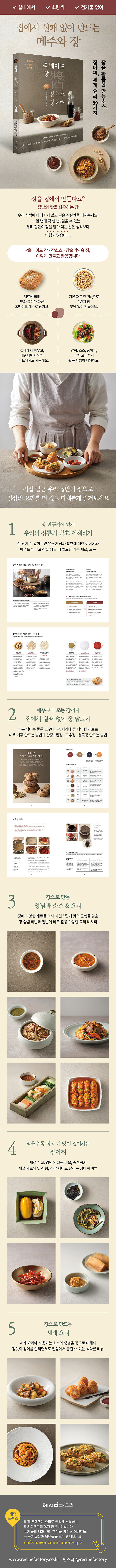 ´õ ÁÁÀº °Ç, ÀÌ Ã¥ÀÌ ¡®Àå ¸¸µé±â¡¯¿¡¼ ³¡³ªÁö ¾Ê´Â´Ù´Â Á¡ÀÔ´Ï´Ù. Áý¿¡¼ ¸¸µç ÀåÀ» Áý¹ä¿¡ ¹Ù·Î Ȱ¿ëÇÒ ¼ö ÀÖµµ·Ï °£Àå ¡¤ °íÃßÀå ¡¤ µÈÀå ¡¤ û±¹Àå µîÀ» º£À̽º·Î ÇÑ ¾ç³ä ¡¤ ¼Ò½º¿Í Ȱ¿ë ¿ä¸®, Á¦Ã¶ Àç·áÀÇ ¸À, ½Ä°¨À» ¿À·¡µµ·Ï Áñ±æ ¼ö ÀÖ´Â À徯Âî, ÀåÀÇ ±íÀº ¸ÀÀ» ´õÇÑ ¼¼°è ¿ä¸®±îÁö ÃÑ 89°¡Áö Ȱ¿ë ·¹½ÃÇǰ¡ À̾îÁý´Ï´Ù. ¾î¶² ÀåÀÌ ¾î¶² ¿ä¸®¿¡ ¾î¿ï¸®´ÂÁö, ÀåÀÇ Â§¸À ¡¤ °¨Ä¥¸À ¡¤ ÇâÀ» ¾î¶»°Ô Á¶ÀýÇØ¾ß ÇÏ´ÂÁö µî ÀÏ»ó ¿ä¸®¿¡ ¹Ù·Î Àû¿ëÇÒ ¼ö ÀÖ´Â ½Ç¿ëÀûÀÎ ºñ¹ýÀ» ¾ËÂ÷°Ô ´ã¾Ò½À´Ï´Ù.