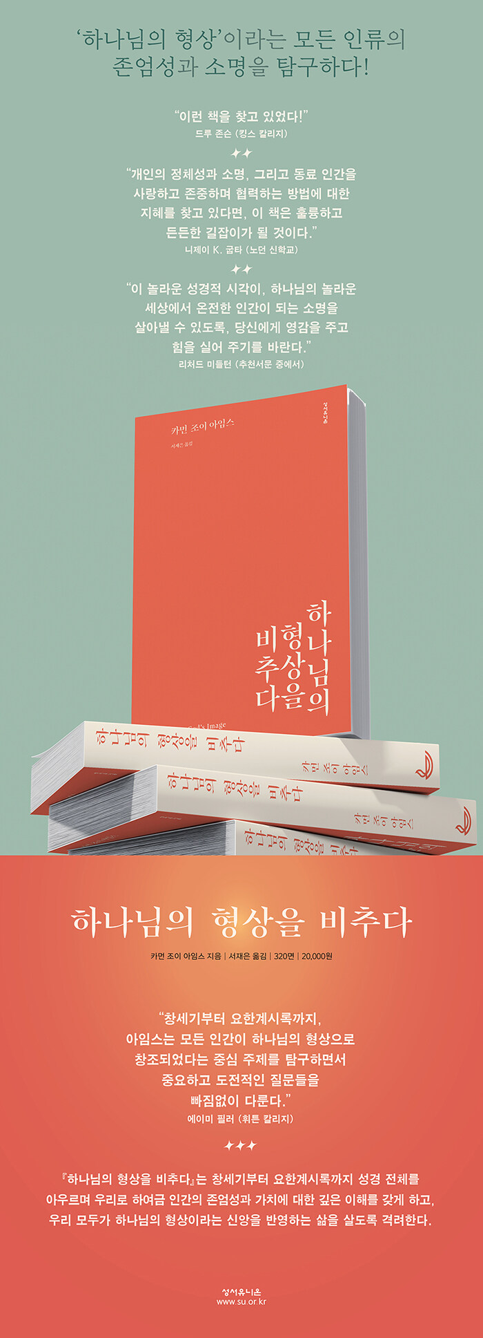 ¼º°æÀÌ ¸»Çϵí, Àΰ£Àº Çϳª´ÔÀÇ Çü»óÀ¸·Î âÁ¶µÇ¾ú´Ù. µû¶ó¼ ¡®Çϳª´ÔÀÇ Çü»ó¡¯Àº ¸ðµç Àΰ£ÀÇ Á¤Ã¼¼ºÀ̸ç, Àΰ£ÀÌ Çϳª´ÔÀ» ´ë½ÅÇÏ¿© ÅëÄ¡Çϵµ·Ï À§ÀÓ¹ÞÀº Á¸ÀçÀÓÀ» ÇÔÀÇÇÑ´Ù. ÀÌ Ã¥Àº ¿ì¸®°¡ Çϳª´ÔÀÇ Çü»óÀ̶ó´Â Àǹ̸¦ ޱ¸ÇÏ°í ±×°ÍÀÌ ¿ì¸®ÀÇ ÀÏ, âÁ¶¼¼°è¿¡ ´ëÇÑ µ¹º½, ¿µ¿øÇÑ ¿î¸í°ú ¾î¶² °ü·ÃÀÌ ÀÖ´ÂÁö »ìÇÉ´Ù. À̸¦ ÅëÇØ Àΰ£ÀÇ Á¸¾ö¼º°ú °¡Ä¡¿¡ ´ëÇÑ ¿ì¸®ÀÇ ÀÌÇØ¸¦ ±í°Ô Çϰí, Çϳª´Ô°ú ¼·Î¸¦ »ç¶ûÇÏ´Â °øµ¿Ã¼·Î »ì¾Æ°¡µµ·Ï ¿ì¸®¸¦ ÃÊ´ëÇÑ´Ù.