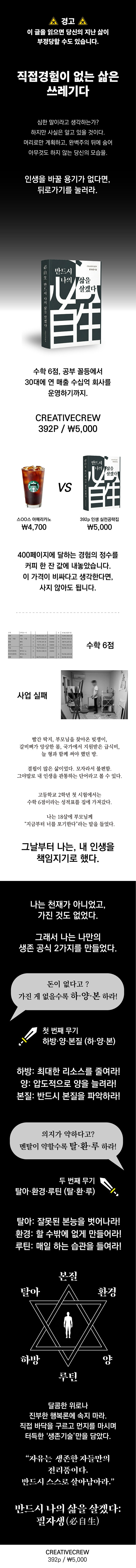 °íµîÇб³ ¼öÇÐ ¼ºÀû 6Á¡, 9µî±ÞÀÇ ¿µî»ý¿¡¼ ¿¬ ¸ÅÃâ 40¾ï ¿øÀÇ ¿Â¶óÀÎ À¯Åë ȸ»çÀÇ ´ëÇ¥°¡ µÈ ÀúÀÚ 'ÇÊÀÚ»ý'ÀÇ Ä¡¿ÇÑ »ýÁ¸ ±â·ÏÀÌÀÚ ½ÇÀü Àü·«¼ÀÌ´Ù. ÀúÀÚ´Â °¡³°ú °áÇÌÀ» µ¿·Â »ï¾Æ ¸Ç¸öÀ¸·Î ¼¼»ó¿¡ ºÎµúÈ÷¸ç ±ú´ÞÀº Áø¸®¸¦ ±â·ÏÇÏ¿© Ã¥À¸·Î ¿«¾ú´Ù.