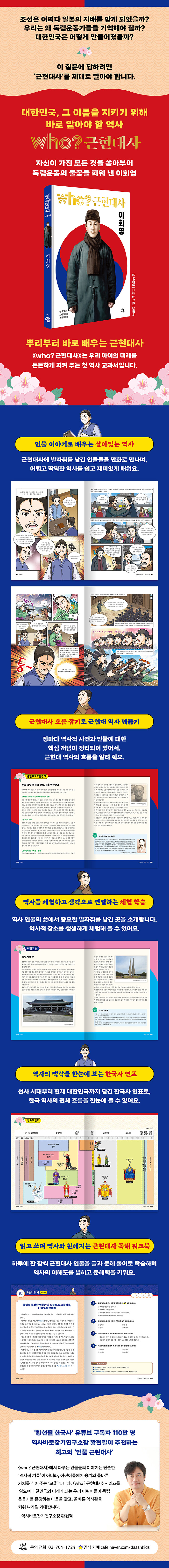 ¡¶who? ±ÙÇö´ë»ç¡·´Â ½Ã´ë¸¦ °üÅëÇÏ´Â Å« È帧À» Àι°ÀÇ »î°ú ¿¬°áÇØ º¸¿© ÁÝ´Ï´Ù. À̸¦ ÅëÇØ µ¶ÀÚµéÀº '³ª'¿Í '»çȸ', '¿ª»ç'¸¦ À¯±âÀûÀ¸·Î ¿¬°áÇϸç, ÀÚ½ÅÀ» ¹ÎÁֽùÎÀ¸·Î¼ ÀνÄÇÏ°Ô µË´Ï´Ù. ¶ÇÇÑ ¿ì¸® ±ÙÇö´ë»ç¸¦ ¾î¸°À̵鿡°Ô ½±°í ¿Ã¹Ù¸£°Ô Àü´ÞÇÒ ¼ö ÀÖ°Ô ÇÏ¿©, °¡Á¤°ú Çб³, µ¶¼ ±³À° ÇöÀå¿¡¼ ´Ù¾çÇÏ°Ô È°¿ëÇÒ ¼ö ÀÖ½À´Ï´Ù.