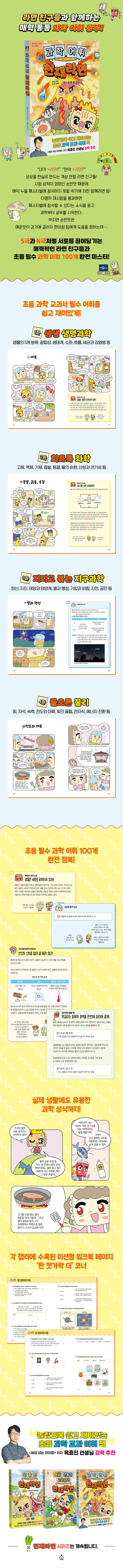 ¡¸ÃµÀç¶ó¸é¡¹ ½Ã¸®ÁîÀÇ ¼¼ ¹øÂ° Ã¥ÀÎ ¡º°úÇÐ ¾îÈÖ ÃµÀç¶ó¸é¡»Àº ÃʵîÇб³ 3~6Çг⠰úÇÐ ±³°ú¼¿¡ ³ª¿À´Â ÇÙ½É °úÇÐ ¾îÈÖ 100°³¸¦ °¡·Á »Ì¾Æ »ý¸í°úÇÐ, ÈÇÐ, Áö±¸°úÇÐ, ¹°¸® ÃÑ 4°³ ¿µ¿ªÀ¸·Î ³ª´©°í, ¼·Î ¿¬°èµÈ °úÇÐ ¿ë¾î¸¦ ¹¾î È¿°úÀûÀ¸·Î ÇнÀÇÒ ¼ö ÀÖµµ·Ï ±¸¼ºÇÏ¿´½À´Ï´Ù. °³¼º ¸¸Á¡ ¶ó¸é Ä£±¸µé°ú ÇÔ²² ÀÏ»ó ¼Ó ´Ù¾çÇÑ °úÇÐ Çö»óÀ» ¹ß°ßÇϰí ÃÊµî °úÇÐ Çʼö ¾îÈÖ¸¦ ´õ¿í źźÇÏ°Ô ÀÍÇô, ¡®¸ÅÁ÷ ´©µé Æä½ºÆ¼¹ú¡¯¿¡ Âü°¡Çϱâ À§ÇØ °í±ººÐÅõÇÏ´Â À̾߱Ⱑ Èï¹ÌÁøÁøÇÏ°Ô ÆîÃÄÁöÁö¿ä. À̻Ӹ¸ ¾Æ´Ï¶ó, ÈÁ¦ÀÇ º£½ºÆ®¼¿·¯ ¡º¼¼±Ý ³»´Â ¾ÆÀ̵须ÀÇ ÀúÀÚÀÌÀÚ ÇöÁ÷ ÃÊµî ±³»çÀÎ ¿ÁÈ¿Áø ¼±»ý´ÔÀÇ ²Ä²ÄÇÑ °¨¼ö¸¦ ÅëÇØ °úÇÐ ³»¿ë, Á¤º¸ÀÇ ¼öÁذú Á¤È®¼ºÀ» ³ô¿´½À´Ï´Ù.