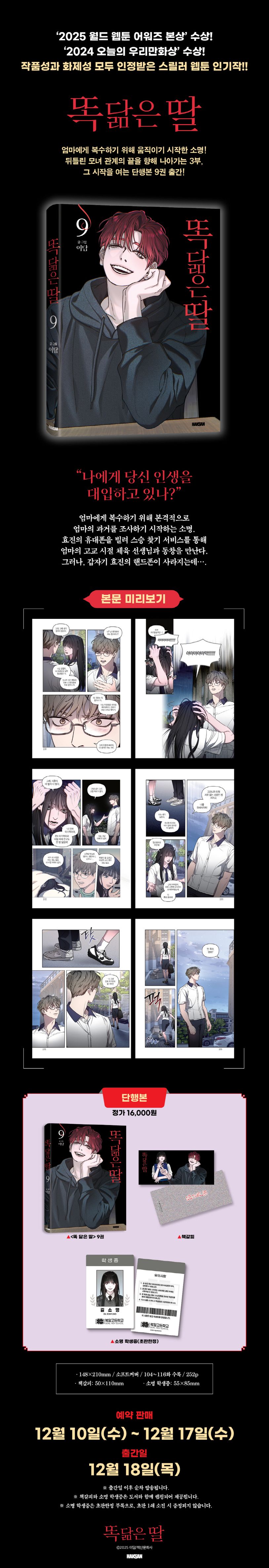 ¿¬Àç ³»³» ³ôÀº ¼øÀ§¿Í º°Á¡À» ±â·ÏÇÏ¸ç ½º¸±·¯ À¥Å÷ »óÀ§±ÇÀ» ±»°ÇÈ÷ Áö۰í ÀÖ´Â ¡º¶È ´àÀº µþ¡». ÀÌ ÀÛǰÀº 2023³â SCÀ¥Å÷¾î¿öÁî ¡®½ÅÀÎÀ¥Å÷ÀÛ°¡»ó¡¯, ´ëÇѹα¹ÄÜÅÙÃ÷´ë»ó ¸¸È ºÎ¹® ¡®Çѱ¹ÄÜÅÙÃ÷ÁøÈï¿ø»ó¡¯À» ½ÃÀÛÀ¸·Î, 2024³â '¿À´ÃÀÇ ¸¸È»ó'°ú °ñµçºê¸´Áö À¥Å÷¾î¿öÁî ¡®¾ÆÆ®ºê¸´Áö»ó¡¯À» ¼ö»óÇß´Ù. 2025³â¿¡´Â ¿ùµå À¥Å÷ ¾î¿öÁî¿¡¼ º»»óÀ» ¹ÞÀ¸¸ç ÀÛǰ¼ºÀ» ´Ù½Ã Çѹø ÀÔÁõÇß´Ù. ÀÌ´ã ÀÛ°¡ ƯÀ¯ÀÇ ¼û ¸·È÷´Â ¼½ºÆæ½º ¿¬Ãâ·Î ¿À·£ ¿¬Àç¿¡µµ ÈÁ¦¼º°ú Àα⸦ ²ÙÁØÈ÷ À¯ÁöÇϰí ÀÖ´Ù.