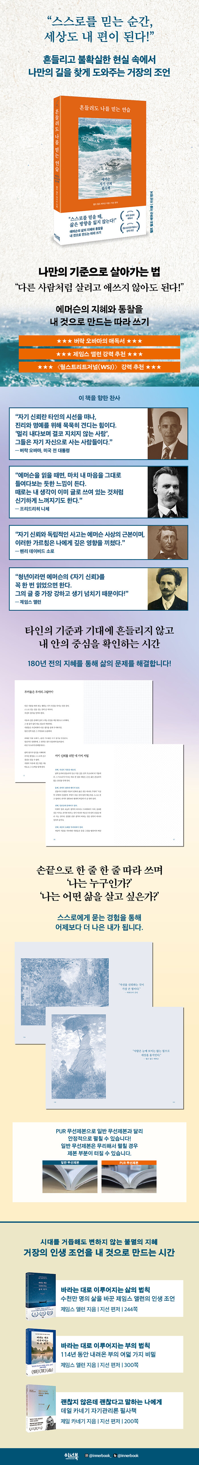 ¡°½º½º·Î¸¦ ¹Ï¾î¶ó. ¼¼»óÀº °á±¹ ÀÚ±â ÀÚ½ÅÀ» ¹Ï´Â »ç¶÷À» µû¸¥´Ù¡±¶ó°í ¿¡¸Ó½¼Àº ¡¶Àڱ⠽ŷڡ·¸¦ ÅëÇØ ¸»Çß´Ù. ¿¡¸Ó½¼ÀÇ Ã¥ÀÌ 180¿© ³â Àü¿¡ Ãâ°£µÇ¾úÁö¸¸, ¿©ÀüÈ÷ »ç¶û¹Þ´Â ÀÌÀ¯´Â ½Ã´ë¸¦ ÃÊ¿ùÇÑ Ã¶ÇÐÀÌÀÚ »îÀÇ Åµµ¸¦ À̾߱âÇϱ⠶§¹®ÀÌ´Ù.