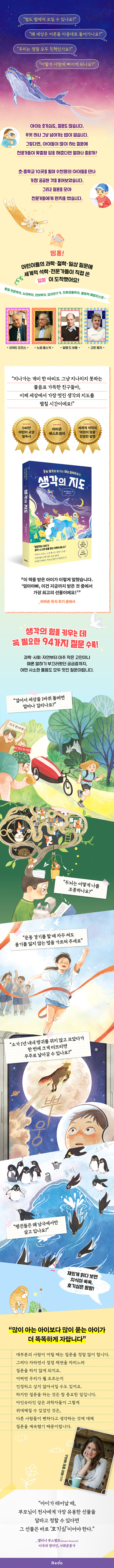 ¾ÆÀ̵éÀÇ Áú¹®Àº ¡®¼Ò°¡ 1³â µ¿¾È Âü¾Ò´Ù°¡ ²î´Â ¹æ±Í´Â ¾ó¸¶³ª ¼¿±î?¡¯ºÎÅÍ ¡®³²ÀÚ¿Í ¿©ÀÚ´Â ¾î¶»°Ô »ç¶û¿¡ ºüÁö´ÂÁö¡¯, ¡®Àΰ£Àº ¸ðµÎ ģôÀÌ ¸Â´ÂÁö¡¯, ¡®¿ìÁÖ´Â ¿Ö ¹Ý¦°Å¸®´ÂÁö¡¯±îÁö ´Ù¾çÇÑ ºÐ¾ß¸¦ ³Ñ³ªµé¾ú°í, ±× ÀÚü·Î âÀÇÀûÀÌ¸ç ±â¹ßÇß´Ù. ÀÌ·¸°Ô ¸ðÀÎ 94°¡Áö Áú¹®µéÀº ÁøÈ»ý¹°ÇÐÀÚ ¸®Ã³µå µµÅ²½º, ¾ð¾îÇÐÀÚ ³ë¾ö ÃνºÅ°, ÀÛ°¡ ¾Ë·© µå º¸Åë µî ¼¼°èÀûÀ¸·Î À̸§ÀÌ ¾Ë·ÁÁø °¢ ºÐ¾ß ¼®Çе鿡°Ô Àü´ÞµÇ¾ú°í, ±×µéÀº ¾ÆÀ̵éÀÇ ´«³ôÀ̸¦ Á¸ÁßÇϸ鼵µ Áö½Ä°ú »çÀ¯°¡ ´ã±ä ÁøÁöÇÑ ´äÀ» º¸³»¿Ô´Ù. ¾îµð¿¡¼µµ ¸¸³ª±â Èûµç Ưº°ÇÑ ¼ö¾÷À» ¡¶»ý°¢ÀÇ Áöµµ¡· ÇÑ ±ÇÀ¸·Î °æÇèÇÒ ¼ö ÀÖ´Â ¼ÀÀÌ´Ù.