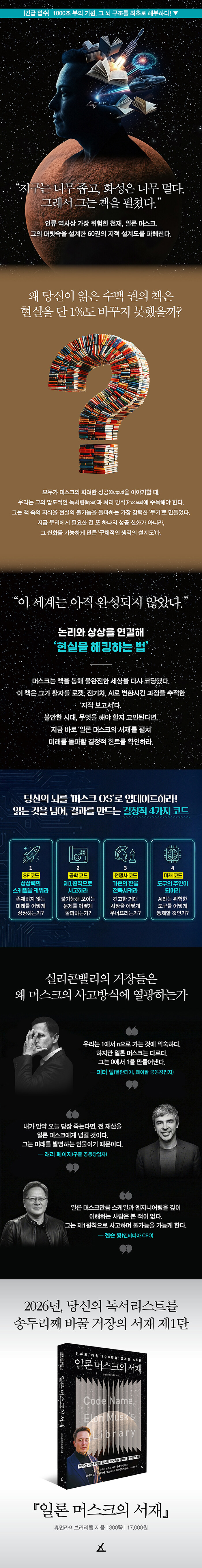 À̹ø¿¡ ¢ß¾Þ±ÛºÏ½º´Â ¡®½Ã´ë¸¦ À̲ö À§´ëÇÑ °ÅÀåÀÌ »ç¶ûÇÑ Ã¥µé¡¯ ½Ã¸®ÁîÀÇ Ã¹ ¹øÂ° Ã¥À¸·Î ¡ºÀÏ·Ð ¸Ó½ºÅ©ÀÇ ¼Àç¡»¸¦ Ãâ°£Çß´Ù. ÀÌ Ã¥Àº ´Ü¼øÇÑ ¸í»çÀÇ Ãßõ µµ¼ ¸ñ·ÏÀÌ ¾Æ´Ï´Ù. ÀÏ·Ð ¸Ó½ºÅ©°¡ Á÷Á¢ ޵¶ÇÏ°í ¾ð±ÞÇÑ 60±ÇÀÇ Ã¥À» ºÐ¼®ÇÏ¿©, ±×°¡ ÅØ½ºÆ®(ȰÀÚ)¸¦ ¾î¶»°Ô ·ÎÄÏ, Àü±âÂ÷, AI¶ó´Â ¹°¸®Àû Çö½Ç·Î º¯È¯½ÃÄ×´ÂÁö ÃßÀûÇÑ Áý¿äÇÑ ¡®ÁöÀû º¸°í¼¡¯¶ó ÇÒ ¼ö ÀÖ´Ù.