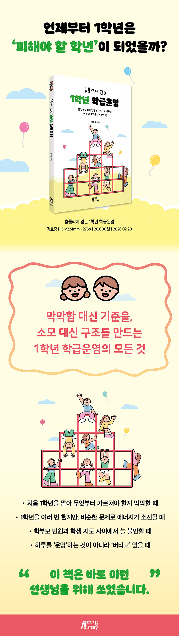 ±×¸®°í µ¿½Ã¿¡, ÀÌ Ã¥ÀÌ ±³»çÀÇ ÇູÀ» ¿ì¼±¼øÀ§¿¡ µÎ°í ÀÛ¼ºµÇ¾ú´Ù´Â Á¡À» ºÐ¸íÈ÷ ÇØ µÎ°í ½Í´Ù. ±³»ç°¡ ¹«³ÊÁø »óÅ¿¡¼ °Ç°ÇÑ ÇбÞÀ» ±â´ëÇϱâ´Â ¾î·Æ´Ù. ±³»çÀÇ ¸¶À½¿¡ ÃÖ¼ÒÇÑÀÇ ¿©À¯¿Í ¾ÈÀüÀ» È®º¸ÇÒ ¶§, ºñ·Î¼Ò ¾ÆÀ̵éÀÇ ¼ºÀå°ú °ü°èÀÇ ¼º¼÷µµ ÇÔ²² °¡´ÉÇØÁø´Ù. ÀÌ Ã¥ÀÌ 1Çгâ Çб޿À» ÁغñÇÏ´Â ¼±»ý´Ô²² ½ÇÁ¦ÀûÀÎ Âü°í¼ÀÌÀÚ, °úÁ¤ Àüü¸¦ ÇÔ²² °í¹ÎÇØ ÁÖ´Â µ¿·á ±³»çó·³ ´À²¸Áö±â¸¦ ¹Ù¶õ´Ù.