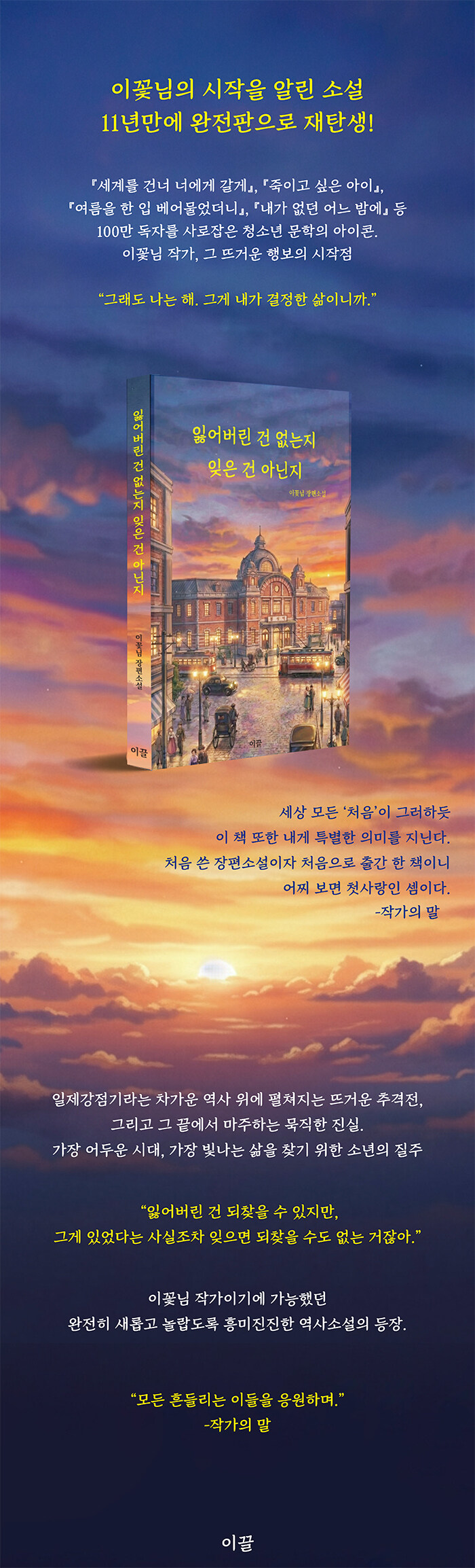 11³â ¸¸¿¡ ¿ÏÀüÈ÷ °³Á¤µÈ À̹ø ÆÇº»Àº ´Ü¼øÇÑ ÀçÃâ°£ÀÌ ¾Æ´Ï´Ù. ´õ ±í¾îÁø ½Ã¼±°ú ´Ü´ÜÇØÁø ¹®ÀåÀ¸·Î Àι°°ú ¼»ç¸¦ »õ·Ó°Ô ´Ùµë°í ºÐ·®À» º¸°ÇØ ¿ÏÀüÆÇÀ¸·Î µ¹¾Æ¿Ô´Ù. °¡Àå ¾îµÎ¿î ½Ã´ë¿¡ ¡®»î¡¯À̶ó´Â ÇÑ ±ÛÀÚ¸¦ ºÙµé·Á Çß´ø ¼Ò³âÀÇ ¼±ÅÃÀ» ÅëÇØ, ÀØÁö ¸»¾Æ¾ß ÇÒ ¿ª»ç¿Í ±â¾ïÀÇ Àǹ̸¦ ´Ù½Ã ¹¯´Â ÀÛǰÀÌ´Ù.