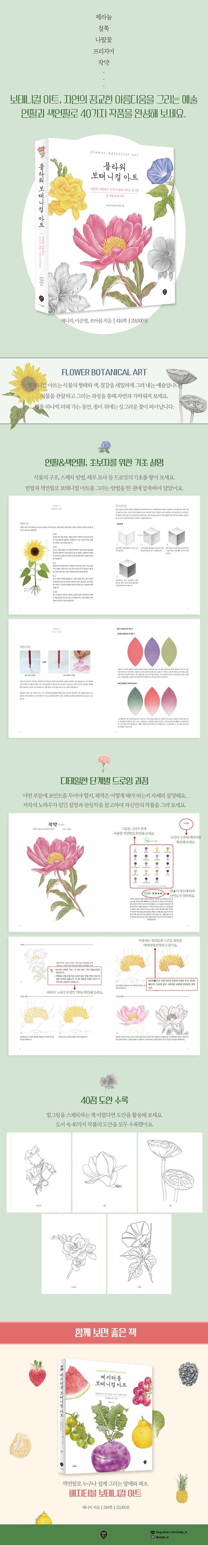 ¡ºÇöó¿ö º¸Å´ÏÄà ¾ÆÆ® : ¿¬Çʰú »ö¿¬ÇÊ·Î ´©±¸³ª ½±°Ô ±×¸®´Â ²É±×¸²¡»Àº ÃÑ 6°¡Áö ÆÄÆ®·Î ÀÌ·ç¾îÁ® ÀÖ½À´Ï´Ù. ÆÄÆ® 1¿¡¼´Â ½Ä¹°ÀÇ ±¸Á¶ºÎÅÍ ½ºÄÉÄ¡ ¹æ¹ý, ¼¼ºÎ ¹¦»ç±îÁö ±âÃÊ ÀÌ·ÐÀ» ´Ù·ì´Ï´Ù. ÆÄÆ® 2¿Í 3¿¡¼´Â ¿¬ÇÊ·Î, ÆÄÆ® 4¿Í 5¿¡¼´Â »ö¿¬ÇÊ·Î ²ÉÀ» ±×¸®´Â °úÁ¤À» ¼Ò°³ÇÕ´Ï´Ù. ÃʽÉÀÚ¸¦ À§ÇÑ µµ±¸ ¼³¸í°ú ¸íµµ¿Í Ä÷¯ Â÷Æ®, ´Ü°èº° ¹¦»ç ¹æ¹ýÀ» »ó¼¼È÷ ¼ö·ÏÇßÀ¸¸ç, ¿¬ÇÊ ÆÄÆ®¿¡¼´Â 15°¡Áö, »ö¿¬ÇÊ ÆÄÆ®¿¡¼´Â 25°¡Áö ²É Ç¥Çö ±â¹ýÀ» ¸¸³¯ ¼ö ÀÖ½À´Ï´Ù. ¸¶Áö¸· ÆÄÆ® 6¿¡´Â Ã¥¿¡ ¼ö·ÏµÈ ¸ðµç ÀÛǰÀÇ µµ¾ÈÀ» ½Ç¾î, µ¶ÀÚ°¡ Á÷Á¢ µû¶ó ±×¸®¸ç ¿¬½ÀÇÒ ¼ö ÀÖµµ·Ï Çß½À´Ï´Ù.