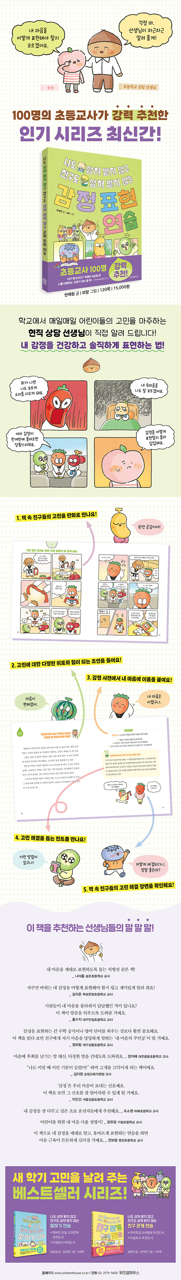 Ãâ°£ Áï½Ã º£½ºÆ®¼¿·¯¿¡ ¿À¸¥ ¡¶³ªµµ »óó ¹ÞÁö ¾Ê°í Ä£±¸µµ »óó ¹ÞÁö ¾Ê´Â ¸»Çϱ⠿¬½À¡·°ú ¡¶Ä£±¸ °ü°è ¿¬½À¡·¿¡ ÀÌ¾î ¼¼ ¹øÂ° Ã¥ ¡¶°¨Á¤ Ç¥Çö ¿¬½À¡·¿¡¼´Â ÀÚ±â ÀÚ½ÅÀ» µ¹º¸°í »ó´ë¹æÀ» ¹è·ÁÇϱâ À§ÇØ ²À ¾Ë¾Æ¾ß ÇÒ ¡®°¨Á¤ Àб⡯¸¦ ´Ù·é´Ù. Ưº°È÷ ÃʵîÇб³ Àü¹® »ó´ã ±³»ç ÇÑÇý¿ø ÀÛ°¡°¡ dzºÎÇÑ ÇöÀå °æÇèÀ» ³ì¿© ¾î¸°À̰¡ ½Ç»ýȰ¿¡¼ °ÞÀ» ¹ýÇÑ °í¹ÎÀ» ¾ö¼±ÇØ ´ã¾Ò´Ù. ¡°³» ¸¶À½ÀÇ ÁÖÀΰøÀÌ µÉ ¼ö ÀÖµµ·Ï À̲ô´Â Ã¥!¡±À̶ó´Â »çÀü ¼Æò´ÜÀÇ Âù»çó·³, °¨Á¤ Ç¥Çö¿¡ ¼Åø·¶´ø ¾î¸°ÀÌ¿¡°Ô ÀÚ½ÅÀÇ ¸¶À½À» ÀÌÇØÇÏ°í °Ç°ÇÏ°Ô Ç¥ÇöÇÏ´Â ±æÀ» ¿¾î ÁÙ °ÍÀÌ´Ù.