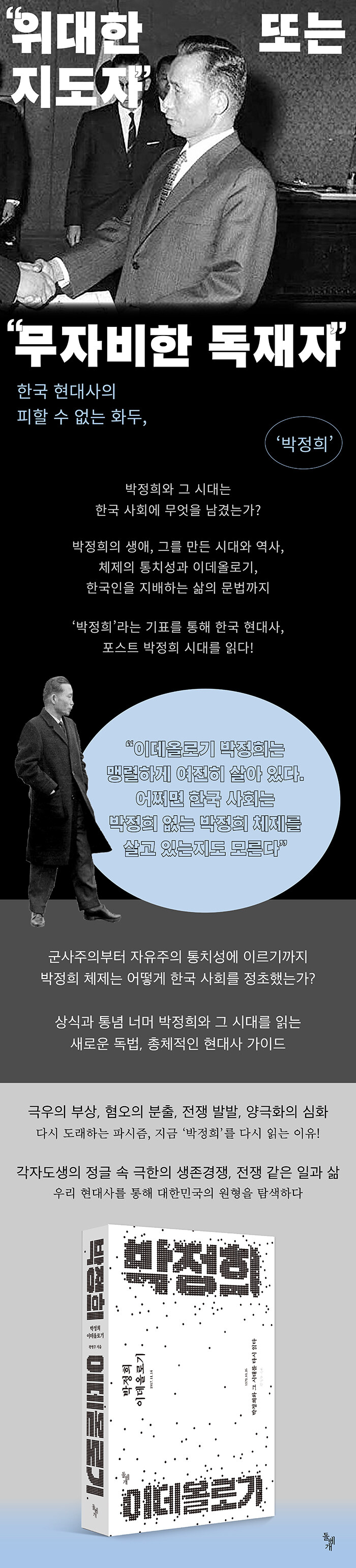 ¡º¹ÚÁ¤Èñ À̵¥¿Ã·Î±â¡»´Â ¡®À§´ëÇÑ ÁöµµÀÚ¡¯ ¶Ç´Â ¡®¹«ÀÚºñÇÑ µ¶ÀçÀÚ¡¯¶ó´Â ¿©·¯ ÇÔÀǸ¦ Áö´Ñ ¡®¹ÚÁ¤Èñ¡¯¿Í ±× ½Ã´ë¸¦ ÀÐÀ¸¸ç, üÁ¦ÀÇ ÅëÄ¡¼º°ú À̵¥¿Ã·Î±â¸¦ ÇØºÎÇϰí, ¿À´Ã³¯ Çѱ¹ÀÎÀ» Áö¹èÇÏ´Â »îÀÇ ¹®¹ý±îÁö Åì¾Æº»´Ù. ¡®¹ÚÁ¤Èñ¡¯¶ó´Â ±âÇ¥¸¦ ÅëÇØ ¹ÚÁ¤Èñ ½Ã´ë»Ó ¾Æ´Ï¶ó Æ÷½ºÆ® ¹ÚÁ¤Èñ ½Ã´ë±îÁö Çѱ¹ Çö´ë»ç¸¦ µ¶ÇØÇÑ´Ù.