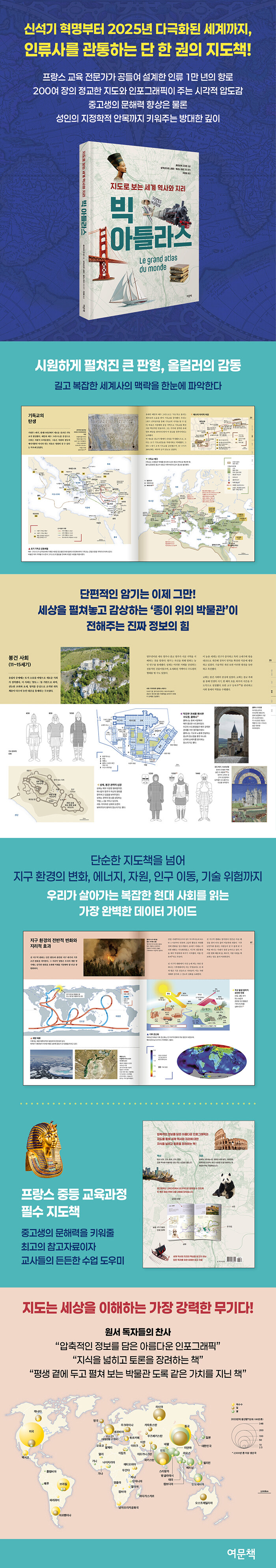 ¡°¸ðµç Áß°í»ýÀÇ ¼Õ¿¡ µé·ÁÁÖ¾î¾ß ÇÒ, ±×¸®°í ¸ðµç µµ¼°üÀÌ ¹Ýµå½Ã °®Ãç¾ß ÇÒ ÈǸ¢ÇÑ ÁöµµÃ¥ÀÌ´Ù. ¡®¿ÀÆ®¸£¸Á¡¯ ÃâÆÇ»çÀÇ ¡®¼¼°èMonde¡¯ ½Ã¸®Áî¿Í ¸ÆÀ» °°ÀÌÇÏ´Â ÀÌ Ã¥Àº, Çб³ ±³À°°úÁ¤°ú ¿¬°èÇØ ±¸»óµÇ¾úÀ¸¸ç ¸Å¿ì È¿°úÀûÀÎ ±³À°Àû Á¢±Ù ¹æ½ÄÀ» ÃëÇϰí ÀÖ´Ù. ´öºÐ¿¡ ÇлýµéÀº ÁßÇб³ °úÁ¤¿¡ ³ª¿À´Â ¿ª»çÀû »ç°Ç°ú Áö¸®Àû Çö»óµéÀ» ½Ã°¢ÀûÀ¸·Î ½±°Ô ÆÄ¾ÇÇÒ ¼ö ÀÖ´Ù. ÀÌ ¾ÆÆ²¶ó½º´Â °íµîÇлýµéÀÇ Çʿ信µµ ¾ÆÁÖ Àß ¸Â´Â´Ù. ³» °³ÀÎ ¼ÒÀ庻À» ¼ö¾÷ ½Ã°£¿¡ Á÷Á¢ °¡Á®°¡¼ ½áº¸´Ï, °íµîÇб³ ¼ö¾÷¿¡µµ Á¤¸» µü ¸Â¾Ò´Ù! ÀÌ Ã¥Àº ´Ü¼øÈ÷ Áß°í»ý¿ë ÇнÀ¼¸¦ ³Ñ¾î, ¼ºÀεéÀÌ ¼¼°èÁ¤¼¼¸¦ ½Ã°¢ÀûÀ¸·Î ºü¸£°Ô ÆÄ¾ÇÇϱâ À§ÇÑ ÀÔ¹®¼·Îµµ ¼Õ»öÀÌ ¾ø´Ù.¡±