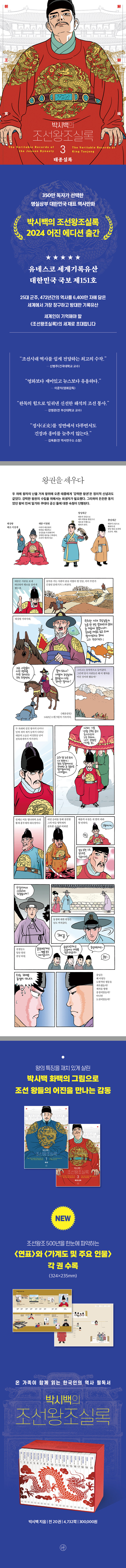 ÀÌó·³ ¡¶Á¶¼±¿ÕÁ¶½Ç·Ï¡·ÀÌ ´ëÁß¿¡°Ô´Â ¾ÆÁ÷ »ý¼ÒÇß´ø 2000³â´ë ÃÊ, Á¶¼±»ç·Î ÇâÇÏ´Â ±æ¸ñÀ» ½Ã¿øÇÏ°Ô ¿¾îÁØ ±â³äºñÀûÀÎ ½Ã¸®Áî ¡¶¹Ú½Ã¹éÀÇ Á¶¼±¿ÕÁ¶½Ç·Ï¡·ÀÌ Åº»ýÇß´Ù. 2001³â ±¸»óÀ» ½ÃÀÛÀ¸·Î 2003³â 1±Ç Ãâ°£, 2013³â 20±Ç ¿Ï°£¿¡ À̸£±â±îÁö 10¿© ³âÀÇ ¼¼¿ùÀ» Á¶¼±»ç¿¡ ¹ÙÃÆ´ø ¹Ú½Ã¹é ȹéÀº ¹æ´ëÇÑ ºÐ·®°ú Æí³âü ¼¼ú·Î ¾Æ¹«³ª Á¢±ÙÇÒ ¼ö ¾ø¾ú´ø ¡¶Á¶¼±¿ÕÁ¶½Ç·Ï¡·À» ´©±¸³ª ½±°í Àç¹ÌÀÖ°Ô º¼ ¼ö ÀÖµµ·Ï ¸¸È¶ó´Â À帣·Î ÀçâÁ¶Çß´Ù. öÀúÈ÷ Á¤»ç¸¦ ¹ÙÅÁÀ¸·Î Çϸ鼵µ ¹Ú½Ã¹é È¹é °íÀ¯ÀÇ ³¯Ä«·Ó°í ÀçÄ¡ ÀÖ´Â ÇØ¼®ÀÌ ´õÇØÁø Á¶¼± ¿ª»ç´Â °³¼º ³ÑÄ¡´Â 500¸íÀÇ Ä³¸¯ÅÍ¿Í 25,000ÄÆÀ̶ó´Â ³î¶ó¿î ºÐ·®°ú ¼»ç, źźÇÑ ±¸¼º°ú ¸íÄèÇÑ ½Ã°¢À¸·Î »ýµ¿Çß´Ù. Á¶¼± ¿ÕÁ¶ 500³â ¿ª»ç¸¦ »ý»ýÇÏ°Ô µÇ»ì·È´Ù´Â ÆòÀ» ¹Þ´Â ¡¶¹Ú½Ã¹éÀÇ Á¶¼±¿ÕÁ¶½Ç·Ï¡·Àº ¾î¸°ÀÌ¿Í Çлý, ¼ºÀο¡ À̸£±â±îÁö µ¶ÀÚÃþÀ» ³ÐÇô¿À¸ç Á¶¼±»ç ÀÚü¿¡ ´ëÇÑ ¹®ÅÎÀ» ³·Ãß°í ±¹¹ÎÀûÀÎ °ü½ÉÀ» ºÒ·¯ÀÏÀ¸Ä×´Ù. ¼ÒÁßÇÑ ¼¼°è±â·ÏÀ¯»ê ¡¶Á¶¼±¿ÕÁ¶½Ç·Ï¡·Àº ÀÌó·³ ³²³à³ë¼Ò ¸ðµÎ°¡ ÇÔ²² ÇâÀ¯Çϰí Áñ±æ ¼ö ÀÖ´Â À̾߱âÀÌÀÚ ¿ì¸® ½Ã´ëÀÇ ¿À¸®Áö³Î ¹®È ÄÜÅÙÃ÷·Î °Åµì³¯ ¼ö ÀÖ¾ú´Ù.