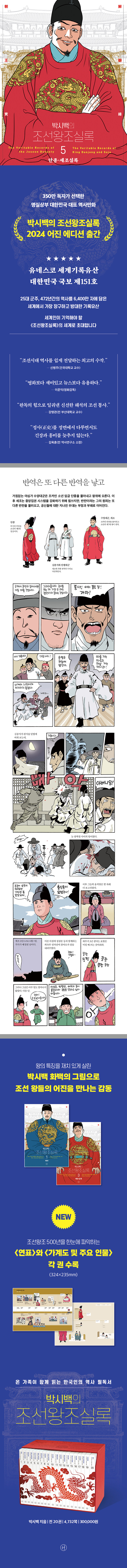 ¡®´ëÇѹα¹ ±¹º¸ Á¦151È£¡¯ÀÌÀÚ ¡®À¯³×½ºÄÚ ¼¼°è±â·ÏÀ¯»ê¡¯, 25´ë ±ºÁÖ¿Í 472³â°£ÀÇ ¿ª»ç¸¦ 6,400¸¸ ÀÚ¿¡ ´ãÀº ÀηùÀÇ ±ÍÁßÇÑ ¿ª»ç ±â·Ï¹° ¡¶Á¶¼±¿ÕÁ¶½Ç·Ï¡·. ¡¶Á¶¼±¿ÕÁ¶½Ç·Ï¡·Àº Á¶¼± ´ç´ë¸¦ ´ã¾Æ³½ À¯ÀÏÇÑ Á¤º» ±â·ÏÀ̱⿡ ¿ì¸® ¿ª»ç¿Í ¹®È ÀÌÇØÀÇ ¿øÃµÀÌ µÇ´Â À¯»êÀÌÁö¸¸, ³²ÇÑ¿¡¼ ¼ÒÀç°¡ ÆÄ¾ÇµÈ °Í¸¸ ÃÑ 2,219Ã¥¿¡ ´ÞÇÏ´Â ¹æ´ëÇÑ ºÐ·® Å¿¿¡ ¿¬±¸ÀÚ¸¦ Á¦¿ÜÇÑ À̵鿡°Ô´Â ¿À·¡µµ·Ï ½±°Ô Á¢±ÙÇÒ ¼ö ¾ø´Â ±â·ÏÀ̾ú´Ù. ÇÏÁö¸¸ ¡¶¹Ú½Ã¹éÀÇ Á¶¼±¿ÕÁ¶½Ç·Ï¡·ÀÌ µîÀåÇÔÀ¸·Î½á ÀÌÁ¦ ´ëÇѹα¹ ±¹¹Î ´©±¸³ª ¼¼°è À¯·Ê¾ø´Â ÃÖ°íÀÇ ±â·ÏÀ¯»êÀ» À庮 ¾øÀÌ Áñ±æ ¼ö ÀÖ°Ô µÇ¾ú´Ù. ¼ö½Ä¾î°¡ ÇÊ¿ä ¾ø´Â µ¶º¸ÀûÀÎ ¿ª»ç ¸¸È°¡ ¹Ú½Ã¹é ȹéÀº ¡¶Á¶¼±¿ÕÁ¶½Ç·Ï¡·À̶ó´Â ÄÜÅÙÃ÷¿¡ ¸¸È¶ó´Â À帣·Î »õ·ÎÀÌ »ý¸í·ÂÀ» ºÒ¾î³Ö¾ú°í, ±×·¸°Ô ź»ýÇÑ ¡¶¹Ú½Ã¹éÀÇ Á¶¼±¿ÕÁ¶½Ç·Ï¡·Àº Á¤»ç¿¡ ±â¹ÝÇÏ¿© źźÇÑ ±¸¼º°ú ±ÕÇü ÀÖ´Â »ç°üÀ» °®Ã߸鼵µ, ¹ø¶àÀÌ´Â ÀçÄ¡¸¦ °âºñÇÏ¿© ³²³à³ë¼Ò ½±°Ô Áñ±æ ¼ö ÀÖ´Â ¿ì¸® ½Ã´ëÀÇ ¿ª»ç ±³¾ç¼·Î ÀÚ¸®¸Å±èÇß´Ù. 2003³â ù ±Ç Ãâ°£ ÀÌ·¡ ½Ã´ë¿Í ²÷ÀÓ¾øÀÌ È£ÈíÇÏ¸ç ¼ö¸¹Àº µ¶ÀÚ¿¡°Ô »ç¶û¹Þ¾Æ¿Â ¡¶¹Ú½Ã¹éÀÇ Á¶¼±¿ÕÁ¶½Ç·Ï¡·Àº ¿©ÀüÈ÷ µ¶º¸ÀûÀÎ Á¶¼±»ç ÄÜÅÙÃ÷ÀÌ´Ù. ÀÌ¿¡ ¿Ï°£ ÈÄ 10³âÀÌ Áö³ Áö±Ý »õ·Ó°Ô ´ÜÀåÇÏ¿© ´õ dz¼ºÇØÁø ÄÜÅÙÃ÷µé°ú ÇÔ²² ¡®2024 ¾îÁø ¿¡µð¼Ç¡¯À» ¼±º¸ÀδÙ.