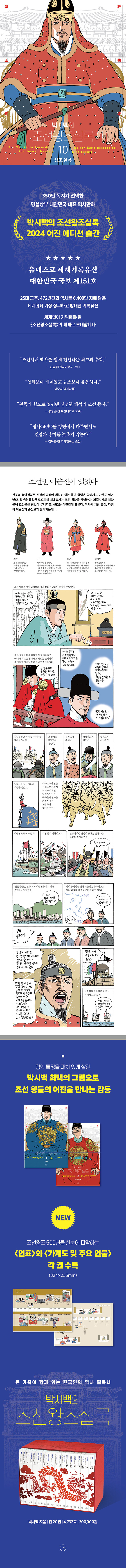 ¡®´ëÇѹα¹ ±¹º¸ Á¦151È£¡¯ÀÌÀÚ ¡®À¯³×½ºÄÚ ¼¼°è±â·ÏÀ¯»ê¡¯, 25´ë ±ºÁÖ¿Í 472³â°£ÀÇ ¿ª»ç¸¦ 6,400¸¸ ÀÚ¿¡ ´ãÀº ÀηùÀÇ ±ÍÁßÇÑ ¿ª»ç ±â·Ï¹° ¡¶Á¶¼±¿ÕÁ¶½Ç·Ï¡·. ¡¶Á¶¼±¿ÕÁ¶½Ç·Ï¡·Àº Á¶¼± ´ç´ë¸¦ ´ã¾Æ³½ À¯ÀÏÇÑ Á¤º» ±â·ÏÀ̱⿡ ¿ì¸® ¿ª»ç¿Í ¹®È ÀÌÇØÀÇ ¿øÃµÀÌ µÇ´Â À¯»êÀÌÁö¸¸, ³²ÇÑ¿¡¼ ¼ÒÀç°¡ ÆÄ¾ÇµÈ °Í¸¸ ÃÑ 2,219Ã¥¿¡ ´ÞÇÏ´Â ¹æ´ëÇÑ ºÐ·® Å¿¿¡ ¿¬±¸ÀÚ¸¦ Á¦¿ÜÇÑ À̵鿡°Ô´Â ¿À·¡µµ·Ï ½±°Ô Á¢±ÙÇÒ ¼ö ¾ø´Â ±â·ÏÀ̾ú´Ù. ÇÏÁö¸¸ ¡¶¹Ú½Ã¹éÀÇ Á¶¼±¿ÕÁ¶½Ç·Ï¡·ÀÌ µîÀåÇÔÀ¸·Î½á ÀÌÁ¦ ´ëÇѹα¹ ±¹¹Î ´©±¸³ª ¼¼°è À¯·Ê¾ø´Â ÃÖ°íÀÇ ±â·ÏÀ¯»êÀ» À庮 ¾øÀÌ Áñ±æ ¼ö ÀÖ°Ô µÇ¾ú´Ù. ¼ö½Ä¾î°¡ ÇÊ¿ä ¾ø´Â µ¶º¸ÀûÀÎ ¿ª»ç ¸¸È°¡ ¹Ú½Ã¹é ȹéÀº ¡¶Á¶¼±¿ÕÁ¶½Ç·Ï¡·À̶ó´Â ÄÜÅÙÃ÷¿¡ ¸¸È¶ó´Â À帣·Î »õ·ÎÀÌ »ý¸í·ÂÀ» ºÒ¾î³Ö¾ú°í, ±×·¸°Ô ź»ýÇÑ ¡¶¹Ú½Ã¹éÀÇ Á¶¼±¿ÕÁ¶½Ç·Ï¡·Àº Á¤»ç¿¡ ±â¹ÝÇÏ¿© źźÇÑ ±¸¼º°ú ±ÕÇü ÀÖ´Â »ç°üÀ» °®Ã߸鼵µ, ¹ø¶àÀÌ´Â ÀçÄ¡¸¦ °âºñÇÏ¿© ³²³à³ë¼Ò ½±°Ô Áñ±æ ¼ö ÀÖ´Â ¿ì¸® ½Ã´ëÀÇ ¿ª»ç ±³¾ç¼·Î ÀÚ¸®¸Å±èÇß´Ù. 2003³â ù ±Ç Ãâ°£ ÀÌ·¡ ½Ã´ë¿Í ²÷ÀÓ¾øÀÌ È£ÈíÇÏ¸ç ¼ö¸¹Àº µ¶ÀÚ¿¡°Ô »ç¶û¹Þ¾Æ¿Â ¡¶¹Ú½Ã¹éÀÇ Á¶¼±¿ÕÁ¶½Ç·Ï¡·Àº ¿©ÀüÈ÷ µ¶º¸ÀûÀÎ Á¶¼±»ç ÄÜÅÙÃ÷ÀÌ´Ù. ÀÌ¿¡ ¿Ï°£ ÈÄ 10³âÀÌ Áö³ Áö±Ý »õ·Ó°Ô ´ÜÀåÇÏ¿© ´õ dz¼ºÇØÁø ÄÜÅÙÃ÷µé°ú ÇÔ²² ¡®2024 ¾îÁø ¿¡µð¼Ç¡¯À» ¼±º¸ÀδÙ.