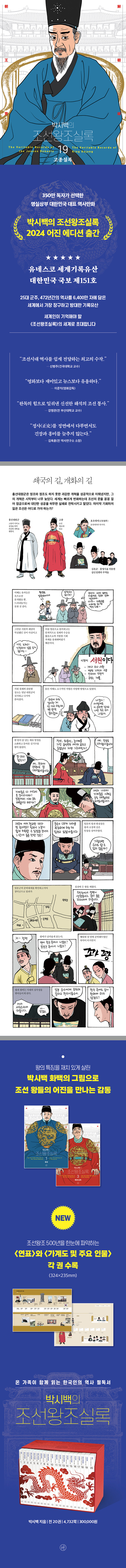 ¡®´ëÇѹα¹ ±¹º¸ Á¦151È£¡¯ÀÌÀÚ ¡®À¯³×½ºÄÚ ¼¼°è±â·ÏÀ¯»ê¡¯, 25´ë ±ºÁÖ¿Í 472³â°£ÀÇ ¿ª»ç¸¦ 6,400¸¸ ÀÚ¿¡ ´ãÀº ÀηùÀÇ ±ÍÁßÇÑ ¿ª»ç ±â·Ï¹° ¡¶Á¶¼±¿ÕÁ¶½Ç·Ï¡·. ¡¶Á¶¼±¿ÕÁ¶½Ç·Ï¡·Àº Á¶¼± ´ç´ë¸¦ ´ã¾Æ³½ À¯ÀÏÇÑ Á¤º» ±â·ÏÀ̱⿡ ¿ì¸® ¿ª»ç¿Í ¹®È ÀÌÇØÀÇ ¿øÃµÀÌ µÇ´Â À¯»êÀÌÁö¸¸, ³²ÇÑ¿¡¼ ¼ÒÀç°¡ ÆÄ¾ÇµÈ °Í¸¸ ÃÑ 2,219Ã¥¿¡ ´ÞÇÏ´Â ¹æ´ëÇÑ ºÐ·® Å¿¿¡ ¿¬±¸ÀÚ¸¦ Á¦¿ÜÇÑ À̵鿡°Ô´Â ¿À·¡µµ·Ï ½±°Ô Á¢±ÙÇÒ ¼ö ¾ø´Â ±â·ÏÀ̾ú´Ù. ÇÏÁö¸¸ ¡¶¹Ú½Ã¹éÀÇ Á¶¼±¿ÕÁ¶½Ç·Ï¡·ÀÌ µîÀåÇÔÀ¸·Î½á ÀÌÁ¦ ´ëÇѹα¹ ±¹¹Î ´©±¸³ª ¼¼°è À¯·Ê¾ø´Â ÃÖ°íÀÇ ±â·ÏÀ¯»êÀ» À庮 ¾øÀÌ Áñ±æ ¼ö ÀÖ°Ô µÇ¾ú´Ù. ¼ö½Ä¾î°¡ ÇÊ¿ä ¾ø´Â µ¶º¸ÀûÀÎ ¿ª»ç ¸¸È°¡ ¹Ú½Ã¹é ȹéÀº ¡¶Á¶¼±¿ÕÁ¶½Ç·Ï¡·À̶ó´Â ÄÜÅÙÃ÷¿¡ ¸¸È¶ó´Â À帣·Î »õ·ÎÀÌ »ý¸í·ÂÀ» ºÒ¾î³Ö¾ú°í, ±×·¸°Ô ź»ýÇÑ ¡¶¹Ú½Ã¹éÀÇ Á¶¼±¿ÕÁ¶½Ç·Ï¡·Àº Á¤»ç¿¡ ±â¹ÝÇÏ¿© źźÇÑ ±¸¼º°ú ±ÕÇü ÀÖ´Â »ç°üÀ» °®Ã߸鼵µ, ¹ø¶àÀÌ´Â ÀçÄ¡¸¦ °âºñÇÏ¿© ³²³à³ë¼Ò ½±°Ô Áñ±æ ¼ö ÀÖ´Â ¿ì¸® ½Ã´ëÀÇ ¿ª»ç ±³¾ç¼·Î ÀÚ¸®¸Å±èÇß´Ù. 2003³â ù ±Ç Ãâ°£ ÀÌ·¡ ½Ã´ë¿Í ²÷ÀÓ¾øÀÌ È£ÈíÇÏ¸ç ¼ö¸¹Àº µ¶ÀÚ¿¡°Ô »ç¶û¹Þ¾Æ¿Â ¡¶¹Ú½Ã¹éÀÇ Á¶¼±¿ÕÁ¶½Ç·Ï¡·Àº ¿©ÀüÈ÷ µ¶º¸ÀûÀÎ Á¶¼±»ç ÄÜÅÙÃ÷ÀÌ´Ù. ÀÌ¿¡ ¿Ï°£ ÈÄ 10³âÀÌ Áö³ Áö±Ý »õ·Ó°Ô ´ÜÀåÇÏ¿© ´õ dz¼ºÇØÁø ÄÜÅÙÃ÷µé°ú ÇÔ²² ¡®2024 ¾îÁø ¿¡µð¼Ç¡¯À» ¼±º¸ÀδÙ.