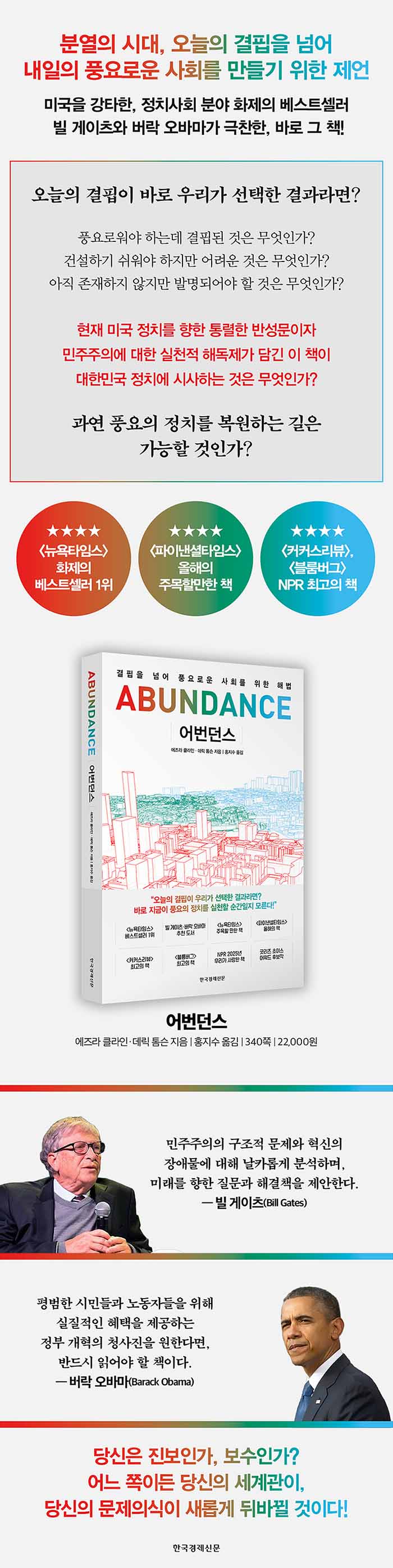 ¼·Î¸¦ ÀûÀ¸·Î ±ÔÁ¤Çϸç Áõ¿À¿Í Çø¿À¸¦ ºÎÃß±â´Â ¡®Á¤Ä¡ ¾ç±ØÈ Çö»ó¡¯ÀÌ ¿À´Ã³¯ Àü ¼¼°è Á¤Ä¡¿Í ¹ÎÁÖÁÖÀÇÀÇ ±Ù°£À» µÚÈçµé°í ÀÖ´Â °ÍÀÌ Çö½ÇÀÌ´Ù. ÀÚ½ÅÀÌ ÁöÁöÇÏ´Â Á¤´çÀ» ÁÁ¾ÆÇϱ⺸´Ù ÀÚ½ÅÀÌ ÁöÁöÇÏÁö ¾Ê´Â Á¤´çÀ» Çø¿ÀÇÏ°í °ø°ÝÇÏ´Â µ¥ Ç÷¾ÈÀÌ µÇ´Â ¾ç´ë Á¤´ç üÁ¦ÀÇ ±¸Á¶Àû ÇѰ谡 ¹Ì±¹»Ó¸¸ ¾Æ´Ï¶ó ±¹³»¿¡¼µµ Å« È¥µ·À» ³º°í ÀÖ´Â °¡¿îµ¥, ÀÌ¿¡ ´ëÇÑ À¯ÀǹÌÇÑ ¸Þ½ÃÁö¸¦ ´øÁö´Â Á¤Ä¡»çȸ ºÐ¾ßÀÇ ÈÁ¦ÀÇ º£½ºÆ®¼¿·¯ ¡¶¾î¹ø´ø½º(Abundance)¡·°¡ ¸¶Ä§³» Ãâ°£µÇ¾ú´Ù. Ãâ°£ Áï½Ã ¡´´º¿åŸÀÓ½º¡µ 1À§¸¦ Â÷ÁöÇÏ¸ç ¿À·§µ¿¾È ¹Ì±¹ »çȸ¸¦ °Å¸Çß´ø Ã¥, ¹Ì±¹ Á¤Ä¡°è¿¡ À̽´¿Í ³í¶õÀ» ºÒ·¯ÀÏÀ¸Å² °ÍÀº ¹°·Ð ºô °ÔÀÌÃ÷¿Í ¹ö¶ô ¿À¹Ù¸¶°¡ ¾Õ´ÙÅý ÃßõÇϸç Å« ¹ÝÇâÀ» ÀÏÀ¸Ä×´ø ¹Ù·Î ±× Ã¥ÀÌ´Ù.