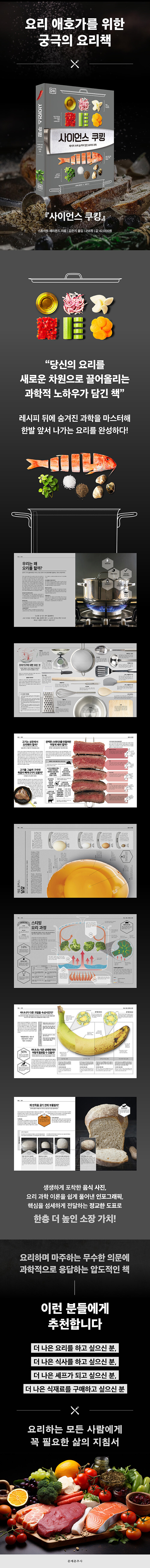 Çö¹Ì°æÀ¸·Î µé¿©´Ùº» ´Þ°¿ °ÅǰÀÇ º¯È, ÈÇÐ ¹ÝÀÀÀ¸·Î ¼³¸íµÇ´Â ½ºÅ×ÀÌÅ©ÀÇ °¥º¯, Çãºê¸¦ ³Ö´Â ŸÀֿ̹¡ µû¶ó ´Þ¶óÁö´Â ÇâÀÇ ³óµµ±îÁö. ¡º»çÀ̾𽺠ÄíÅ·¡»Àº ´«¿¡ º¸ÀÌÁö ¾Ê´ø º¯È¸¦ º¸¿©ÁÖ¸ç ¿ä¸®¸¦ ¡®½ÇÇ衯ó·³ ÀÌÇØÇÏ°Ô ¸¸µç´Ù. ÀÌ Ã¥ÀÇ ¸ñÇ¥´Â ´ÜÁö ¸ÀÀÖ´Â ¿ä¸®¸¦ ¿Ï¼ºÇϵµ·Ï µ½´Â µ¥ ±×Ä¡Áö ¾Ê´Â´Ù. ·¹½ÃÇÇÀÇ ±¼·¹¿¡¼ ¹þ¾î³ª ½º½º·Î »ý°¢Çϰí ÀÀ¿ëÇÏ´Â ÈûÀ» ±â¸£´Â °Í, ±×¸®°í ¿ä¸®¸¦ »õ·Î¿î ½Ã°¢À¸·Î ¹Ù¶óº¸°Ô ÇÏ´Â °ÍÀÌ´Ù. ¡º»çÀ̾𽺠ÄíÅ·¡»Àº ¿ä¸®¸¦ »ç¶ûÇÏ´Â ¸ðµç À̵鿡°Ô ¡®ÀçÇö °¡´ÉÇÑ ½Ç·Â¡¯À» ¼±¹°Çϴ åÀÌ´Ù. »ó»óÇÏÁö ¸øÇß´ø Áñ°Ì°í »õ·Î¿î ¹æ½ÄÀÇ ¿ä¸®°¡ ¿©±â¼ ½ÃÀ۵ȴÙ.