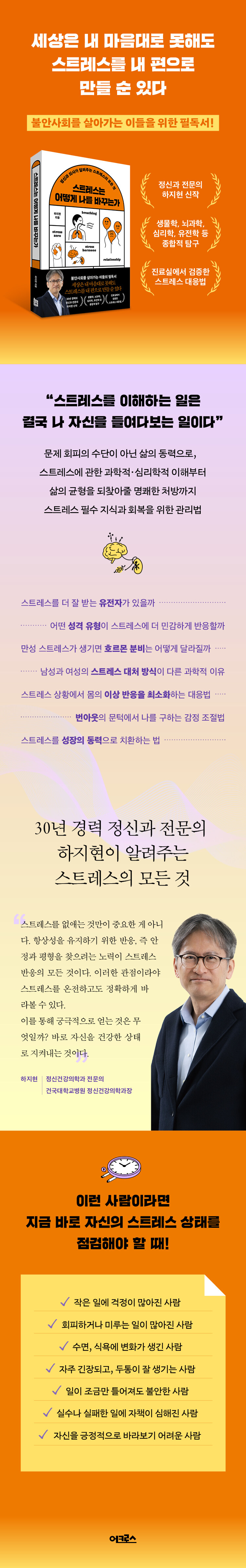 ¡®Çѱ¹ÀÎÀÇ ¸¶À½ ±¸Á¶¸¦ °¡Àå Àß ÀÌÇØÇÏ´Â Á¤½Å°ú Àǻ硯, 30¿© ³â °æ·ÂÀÇ Á¤½Å°Ç°ÀÇÇаú Àü¹®ÀÇ ÇÏÁöÇö ±³¼ö°¡ ¾´ ½ºÆ®·¹½º¿¡ °üÇÑ Á¾ÇÕ±³¾ç¼´Ù. ½ºÆ®·¹½º´Â ´Ü¼øÈ÷ ±âºÐÀÇ ¹®Á¦¸¦ ³Ñ¾î »îÀÇ ±ËÀûÀ» ¹Ù²Ù´Â ½ÇÁúÀûÀÎ À§ÇùÀÌ µÇ±âµµ ÇÑ´Ù. ÀÌ·² ¶§ ½ºÆ®·¹½ºÀÇ ¼ºÁúÀ» ¾ó¸¶³ª Àß ÀÌÇØÇÏ´À³Ä, ¾î¶»°Ô ÆÇ´ÜÇÏ°í ´ëÀÀÇÏ´À³Ä¿¡ µû¶ó ¸ö°ú ¸¶À½ÀÇ »óÅÂ, ³ª¾Æ°¡ »îÀÇ ÁúÀÌ 180µµ ´Þ¶óÁú ¼ö ÀÖ´Ù.
