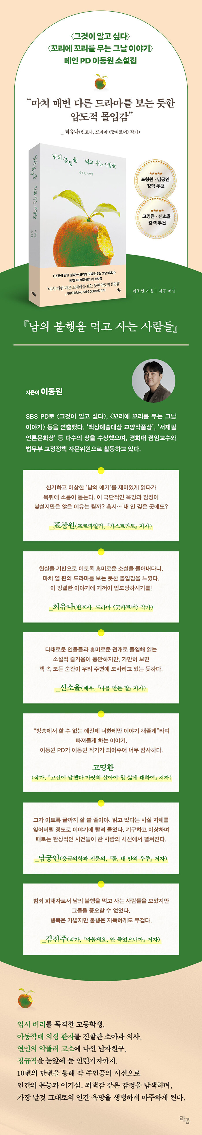 SBS¿¡¼ ½Ã»ç±³¾ç PD·Î ¡´²¿¸®¿¡ ²¿¸®¸¦ ¹«´Â ±×³¯ À̾߱⡵¸¦ ¿¬ÃâÇÑ ÀúÀÚ´Â, Á÷¾÷ÀÎÀ¸·Î¼ ÇöÀå¿¡¼ ¸ñ°ÝÇØ¿Â ´Ù¾çÇÑ Àΰ£ ±º»óÀ» ÅëÇØ, »ç°Ç »ç°í ¼Ó Àΰ£ÀÇ ³»¸é, °ü°è, »ç°í¹æ½Ä¿¡ °ü½ÉÀ» °®°í ¼Ò¼³À» ¾²±â ½ÃÀÛÇß´Ù. ¡º³²ÀÇ ºÒÇàÀ» ¸Ô°í »ç´Â »ç¶÷µé¡»Àº ¼Ò¼³º¸´Ù ´õ ¼Ò¼³ °°Àº Çö½ÇÀ» ÁöÄѺÁ¿Â ±×°¡ ±ä ½Ã°£ ¸¶À½¿¡ ǰÀ¸¸ç ¸¸µé¾î³½ Àι°µéÀÇ ±â±¸ÇÑ ÀλýÀ» ±×·Á³½ ù ¼Ò¼³ÁýÀÌ´Ù. ¸»·Î¸¸ µè´ø ÀԽà ºñ¸®¸¦ ¸ñ°ÝÇÑ °íµîÇлý, ¾Æµ¿Çдë ÀÇ½É È¯ÀÚ¸¦ ÁøÂûÇÑ ¼Ò¾Æ°ú ÀÇ»ç, ¿¬ÀÎÀÇ ¾ÇÇ÷¯ °í¼Ò¿¡ ³ª¼± ³²ÀÚÄ£±¸, Á¤±ÔÁ÷À» ¸ñÀü¿¡ ¾ÕµÐ ÀÎÅϱâÀÚ¡¦. µ¶ÀÚ¸¦ ¼ø½Ä°£¿¡ ±âÀÌÇÑ »ç°ÇÀÇ Áß½ÉÀ¸·Î »¡·Á µé¾î°¡°Ô ¸¸µå´Â 10ÆíÀÇ ´ÜÆí¼Ò¼³À» ¿«¾ú´Ù.