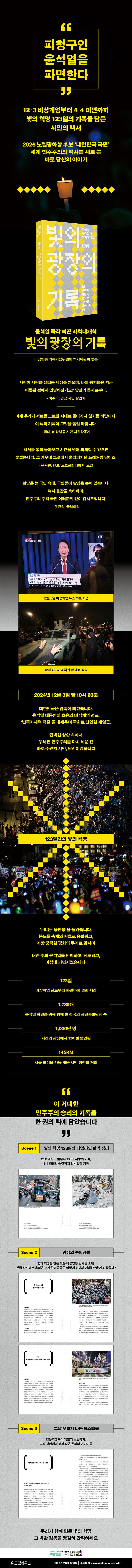 2024³â 12¿ù ºñ»ó°è¾ö ¼±Æ÷¿Í ÀÌÈÄ Á¤Ä¡Àû °Ýº¯Àº Çѱ¹ »çȸ¿¡¼ ¹ÎÁÖÁÖÀÇ¿Í ½Ã¹Î Âü¿©ÀÇ Àǹ̸¦ ´Ù½Ã ¹¯´Â °è±â°¡ µÇ¾ú´Ù. <ºûÀÇ ±¤ÀåÀÇ ±â·Ï>Àº ÀÌ ½Ã±â¸¦ ÇϳªÀÇ ÁýÇÕÀû °æÇèÀ¸·Î Á¤¸®ÇÏ·Á´Â ½Ãµµ¸¦ ´ãÀº ±â·Ï¹°ÀÌ´Ù.