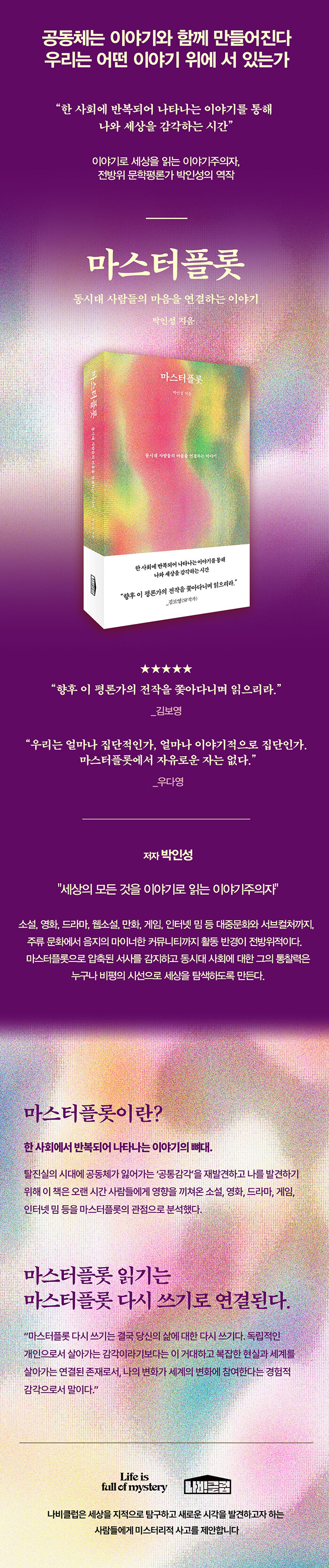 ¡º¿ÀÀ̵ðǪ½º ¿Õ¡», ¡ºÇܸ´¡»ºÎÅÍ ¡ºÃ¼ÀÎ¼Ò ¸Ç¡», ¡ºÁø°ÝÀÇ °ÅÀΡ», ¡´¿À¡¾î °ÔÀÓ¡µ, °ÔÀÓ ¡´½ÉÁ(SIMS) µî ´ëÁß¹®È¿Í ¼ºêÄÃó¸¦ ¾Æ¿ì¸£¸ç À̾߱â·Î ¼¼»óÀ» Àд À̾߱âÁÖÀÇÀÚ, ¹ÚÀμº ¹®ÇÐÆò·Ð°¡ÀÇ ½Å°£ÀÌ Ãâ°£µÇ¾ú´Ù. ÀüÀÛ ¡ºÀ̰ÍÀº À¯ÇØÇÑ À帣´Ù¡»¿¡¼ ¸ðµç ¼»ç¿¡ ħÅõÇÏ´Â ¸Å·ÂÀûÀÎ À帣·Î¼ÀÇ ¹Ì½ºÅ͸®¸¦ ÆÄÇìÃÆ´Ù¸é, ½Å°£¿¡¼´Â ¿À·£ ½Ã°£ »ç¶÷µé¿¡°Ô ¿µÇâÀ» ³¢ÃĿ ¼Ò¼³, ¿µÈ, µå¶ó¸¶, °ÔÀÓ µîÀÇ ¼»ç ÄÜÅÙÃ÷¸¦ ¸¶½ºÅÍÇ÷ÔÀÇ °üÁ¡À¸·Î ºÐ¼®ÇÑ´Ù. ¸¶½ºÅÍÇ÷ÔÀº ÇÑ »çȸ¿¡¼ ¹Ýº¹µÇ¾î ³ªÅ¸³ª´Â À̾߱âÀÇ »À´ë´Ù. ÀÌ Ã¥ÀÌ ¸¶½ºÅÍÇ÷Կ¡ ÁÖ¸ñÇÏ´Â ÀÌÀ¯´Â ºÐ¸íÇÏ´Ù. Å»Áø½ÇÀÇ ½Ã´ë¿¡ °øµ¿Ã¼°¡ ÀҾ´Â ¡®°øÅë°¨°¢¡¯À» Àç¹ß°ßÇϱâ À§Çؼ´Ù.