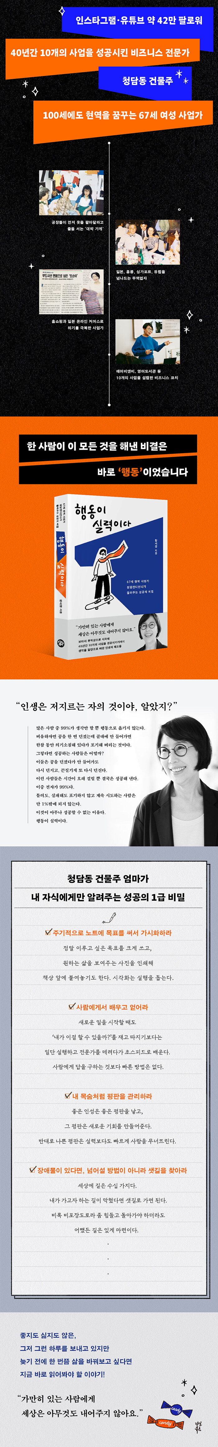 Á÷¼³ÀûÀÎ Çൿ Áöħ°ú ©¸·ÇÑ Á¶¾ðÀ» ´ãÀº ÀüÀÛ°ú ´Þ¸®, ¡ºÇൿÀÌ ½Ç·ÂÀÌ´Ù¡»´Â ÀþÀº ½ÃÀý ÀúÀÚ°¡ Çì¸Å°í ÁÂÃæ¿ìµ¹Çß´ø À̾߱â, ±íÀº ³»¸éÀÇ À̾߱⸦ º¸´Ù Áø¼ÖÇÏ°Ô ´ã¾Æ³Â´Ù. ¡®Ã»´ãĵµð¾ð´Ï´Â ¿ø·¡ºÎÅÍ ³²´Þ¶ú°ÚÁö¡¯¶ó´Â »ý°¢À¸·Î ÇൿÇϱ⵵ Àü¿¡ Áö·¹ °í°³¸¦ Àú¾î¹ö¸®´Â »ç¶÷µéÀ» º¸¸ç, Àڽŵµ ±×Àú Æò¹üÇÏ°í ¹Ì¼÷ÇÑ Ãʺ¸ »ç¾÷°¡¿´À½À» ¾Ë·ÁÁÖ°í ½Í¾ú±â ¶§¹®ÀÌ´Ù. ±×·¡¼ ÀÌ Ã¥¿¡´Â ÀλýÀÇ °úÁ¤¸¶´Ù ºÎµúÈù À§±â¿Í ±×¶§ Çß´ø Çൿµé, ±×·³À¸·Î½á ¹è¿î °ÍµéÀÌ ÀÚ¼¼ÇÏ°Ô ´ã°Ü ÀÖ´Ù. Áö³ÇÑ ½Ã°£À» Áö³ª¸ç ÀλýÀÇ ³»°øÀ» °¡µæ ½×Àº ÀúÀÚ Ã»´ãĵµð¾ð´Ï¸¦ º¸¸ç, ¡®¾ÆÁ÷Àº Áغñ°¡ ´ú µÈ °Í °°¾Æ¼¡¦¡¯ ¡®³ª °°Àº »ç¶÷ÀÌ ¾î¶»°Ô¡¦¡¯¶ó´Â ÀÌÀ¯·Î ¸ÅÀÏ Ã¹ÙÄû¸¸ µ¹´ø À̵鵵 ¿ë±â¸¦ ¾òÀ» ¼ö ÀÖÀ» °ÍÀÌ´Ù.