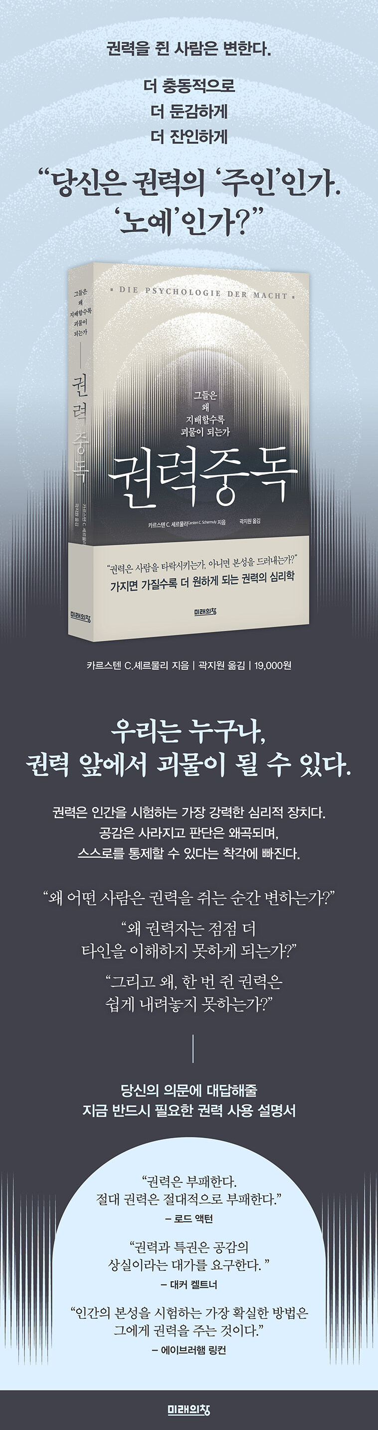 ¡º±Ç·ÂÁßµ¶¡»Àº ±Ç·ÂÀÌ ¾î¶»°Ô ¿ì¸®ÀÇ ¸ö°ú ¸¶À½ ±×¸®°í Á¶Á÷À» ¸Á°¡¶ß¸± ¼ö ÀÖ´ÂÁö ½É¸®ÇÐÀûÀ¸·Î Ç®¾î³½´Ù. ÀÌ Ã¥Àº ±Ç·ÂÀ» ¾ò´Â ó¼¼¼úÀ̳ª ŸÀÎÀ» Á¶Á¾ÇÏ´Â ±â¼úÀ» °¡¸£Ä¡Áö ¾Ê´Â´Ù. ´ë½Å, ±Ç·ÂÀ» °¡Áö°Å³ª ÀÒÀ» ¶§ ¿ì¸® ³ú¿Í »ý¸®¿¡ ¾î¶² º¯È°¡ ÀϾ´ÂÁö, ¿Ö ±Ç·ÂÀڴ ŸÀÎÀÇ °íÅë¿¡ °ø°¨ÇÏÁö ¸øÇÏ°í ½º½º·Î¸¦ ÅëÁ¦ÇÒ ¼ö ÀÖ´Ù´Â Âø°¢¿¡ ºüÁö´ÂÁö ±× ±Ùº»ÀûÀÎ ¸ÞÄ¿´ÏÁòÀ» ³¹³¹ÀÌ ÆÄÇìÄ£´Ù. ³ª¾Æ°¡ ¡º±Ç·ÂÁßµ¶¡»Àº Çö»ó¿¡ ´ëÇÑ ºñÆÇÀ» ³Ñ¾î, ±Ç·ÂÀÇ ºÎÀÛ¿ëÀ» ÅëÁ¦Çϱâ À§ÇÑ ÀÔüÀûÀÎ ´ë¾ÈÀ» Á¦½ÃÇÑ´Ù. ±Ç·Â°¨¿¡ ¸Å¸ôµÇÁö ¾Ê±â À§ÇÑ °³ÀÎÀÇ ¼ºÂûºÎÅÍ, ±Ç·Â ³²¿ëÀ» ÁÙÀ̰í 'ÀÓÆÄ¿ö¸ÕÆ®'¸¦ ½ÇõÇÏ´Â Á¶Á÷ÀÇ ±¸Á¶ ¼³°è ±×¸®°í À§°è¿Í ¸Í¸ñÀû º¹Á¾À» ŸÆÄÇÏ´Â »çȸÀû Â÷¿øÀÇ °Ç°ÇÑ ±Ç·Â »ç¿ë¹ý±îÁö Æø³Ð°Ô ¾Æ¿ì¸¥´Ù.