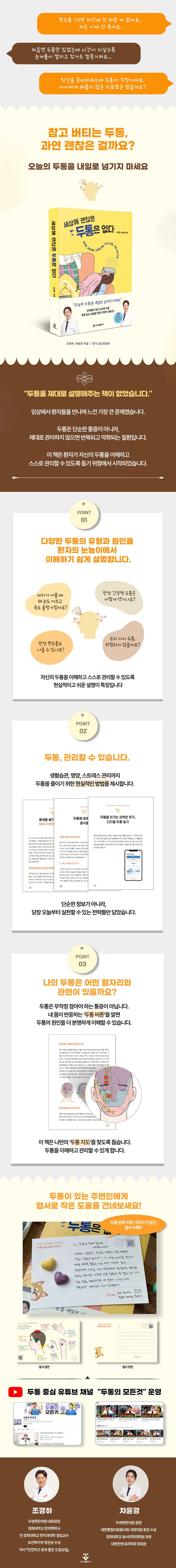 ÀÌ Ã¥Àº µÎÅëÀÇ Á¾·ù¿Í ¿øÀÎÀ» ½±°í ü°èÀûÀ¸·Î ¼³¸íÇϸç, ÀúÀÚµéÀÇ Ç³ºÎÇÑ ÇÑÀÇÇÐ Ä¡·á °æÇèÀ» ¹ÙÅÁÀ¸·Î Áý¿¡¼ ½ÃµµÇÒ ¼ö ÀÖ´Â ½Ç¿ëÀûÀÎ °ü¸®¹ý±îÁö Á¦½ÃÇÕ´Ï´Ù. µÎÅëÀ¸·Î °í»ýÇÏ´Â À̵é°ú, ¾ðÁ¦ ã¾Æ¿ÃÁö ¸ð¸¦ µÎÅëÀ» ´ëºñÇÏ°í ½ÍÀº ¸ðµÎ¿¡°Ô ²À ÇÊ¿äÇÑ ÀÀ±ÞŰƮ °°Àº Ã¥ÀÔ´Ï´Ù.