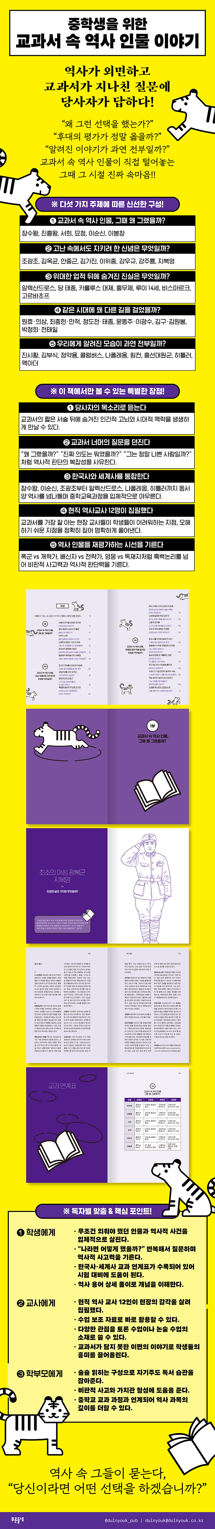 ÀÌ Ã¥Àº ÁßÇб³ ¿ª»ç ±³°ú¼¿Í ¿¬°èµÇÁö¸¸ Ÿ±êÀº ÁßÇлý¿¡ ±¹ÇѵÇÁö ¾Ê´Â´Ù. ¿ø°í¸¦ °ËÅäÇÑ °ü°èÀÚµéÀº ¡°ÇÐâ ½ÃÀý ¿ª»ç¸¦ ¾Ï±â·Î °øºÎÇß´ø ¼ºÀÎ µ¶Àڵ鵵 ¡®¾Æ, ¿ª»ç°¡ ÀÌ·± °Å¿´±¸³ª¡¯¶ó°í ±ú´Ý°Ô µÉ °ÍÀÌ´Ù¡±¶ó°í ÆòÇß´Ù. ½ÇÁ¦·Î ÀÌ Ã¥Àº ¿ª»ç¸¦ ÁÁ¾ÆÇÏÁö ¾Ê¾Ò´ø »ç¶÷µµ Èï¹Ì·Ó°Ô ÀÐÀ» ¼ö ÀÖ°Ô ¾²¿´´Ù. °¢ Àι°ÀÌ ´ç»çÀÚÀÇ ¸ñ¼Ò¸®·Î À̾߱⸦ Ç®¾î³»±â ¶§¹®ÀÌ´Ù. ÇлýÀº ±³°ú¼ Áøµµ¿Í ¿¬°èÇØ Àаí, ±³»ç´Â ¼ö¾÷ ÀÚ·á·Î Ȱ¿ëÇϸç, Çкθð´Â ÀÚ³à¿Í ÇÔ²² Àаí, ¼ºÀÎÀº ¡®¿ª»ç ´Ù½Ã Àб⡯ÀÇ ±³¾ç¼·Î ÀÐÀ¸¸é µÈ´Ù. ÇÑ ±ÇÀÇ Ã¥ÀÌ Àü ¼¼´ë¸¦ ¾Æ¿ì¸£´Â ÄܼÁÆ®·Î ±¸¼ºµÇ±â¶õ ¾î·Á¿î ÀÏÀε¥, ÀÌ´Â ÁýÇÊÁøÀÇ ¡®¿ª»ç ±³À° ÆÐ·¯´ÙÀÓ Àüȯ¡¯À̶ó´Â ½Ãµµ°¡ ÀÖ¾ú±â¿¡ °¡´ÉÇÑ °á°ú´Ù.