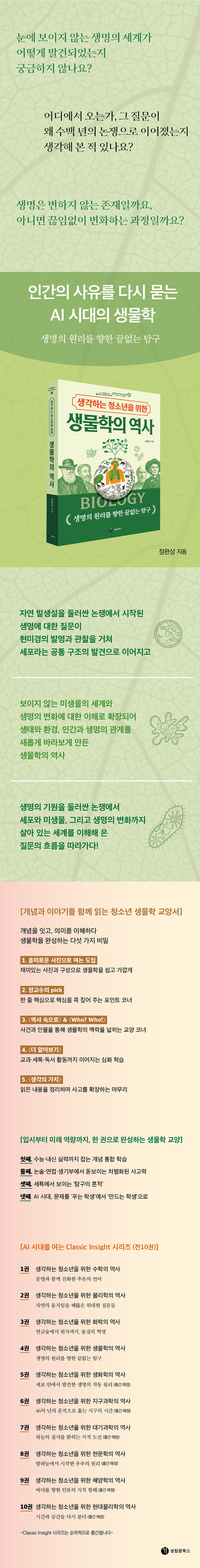 ¡®AI ½Ã´ë¸¦ ¿©´Â Classic Insight ½Ã¸®Á´Â ´Ü¼øÈ÷ °úÇÐ Áö½ÄÀ» ³ª¿ÇÏ´Â µ¥¼ ±×Ä¡Áö ¾Ê°í, Àηù°¡ ¼¼°è¸¦ ÀÌÇØÇØ ¿Â Áú¹®ÀÇ È帧À» µû¶ó »ç°íÀÇ ±íÀ̸¦ È®ÀåÇÏ´Â ±³¾ç ½Ã¸®Áî´Ù. º¸ÀÌÁö ¾Ê´Â ¿ø¸®¿Í ±¸Á¶¸¦ ÀÌÇØÇÒ ¶§, ¿ì¸®´Â º¯ÈÀÇ ¹æÇâÀ» ÀÐÀ» ¼ö ÀÖ´Ù. ¡º»ý°¢Çϴ û¼Ò³âÀ» À§ÇÑ »ý¹°ÇÐÀÇ ¿ª»ç¡»´Â »ý¸íÀ» µÑ·¯½Ñ °üÂû°ú Áú¹®ÀÌ ¾î¶»°Ô °³³äÀ¸·Î Á¤¸®µÇ°í, ÇϳªÀÇ Ã¼°è·Î ¹ßÀüÇØ ¿Ô´ÂÁö¸¦ µû¶ó°£´Ù. À̸¦ ÅëÇØ µ¶ÀÚ´Â »ý¹°ÇÐÀÌ ´Ü¼øÇÑ Áö½ÄÀÌ ¾Æ´Ï¶ó, »ý¸í°ú ȯ°æ, Àΰ£À» ÇÔ²² ÀÌÇØÇÏ´Â »ç°íÀÇ Æ²ÀÓÀ» ±ú´Ý°Ô µÈ´Ù.