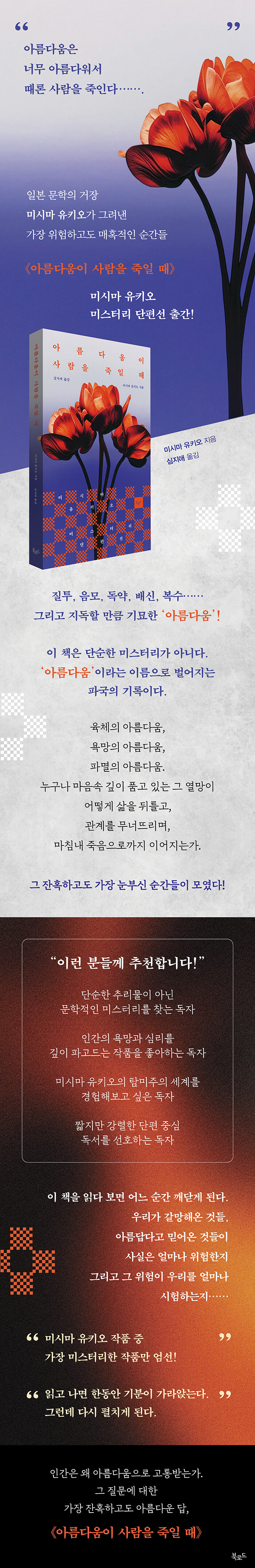ÀϺ» ¹®ÇÐÀ» ´ëÇ¥ÇÏ´Â ÀÛ°¡ ¹Ì½Ã¸¶ À¯Å°¿ÀÀÇ ¹Ì½ºÅ͸® ´ÜÆíÀ» ¾ö¼±ÇÑ ¡ì¾Æ¸§´Ù¿òÀÌ »ç¶÷À» Á×ÀÏ ¶§¡í°¡ Ãâ°£µÆ´Ù. À̹ø ¼±ÁýÀº ÁúÅõ, À½¸ð, »ìÀÇ, ¹è½Å µî Àΰ£ ³»¸é¿¡ ÀáÀçµÈ ¾îµÒÀ» Áý¿äÇÏ°Ô ÆÄ°íµç 12ÆíÀÇ ´ÜÆíÀ» ´ã°í ÀÖ´Ù. °¢ ÀÛǰÀº ªÀº ºÐ·®À¸·Î ±¸¼ºµÇ¾î ÀÖÀ¸¸ç, Æò±Õ 5~10ºÐÀ̸é ÀÐÀ» ¼ö ÀÖ´Â ¼Óµµ°¨ ÀÖ´Â Àü°³°¡ Ư¡ÀÌ´Ù. ±×·¯³ª °£°áÇÑ ºÐ·®°ú ´Þ¸® ÀÛǰÀÌ ³²±â´Â ½É¸®Àû ¿©¿î°ú ¹ÌÇÐÀû ±íÀÌ´Â °áÄÚ °¡º±Áö ¾Ê´Ù.