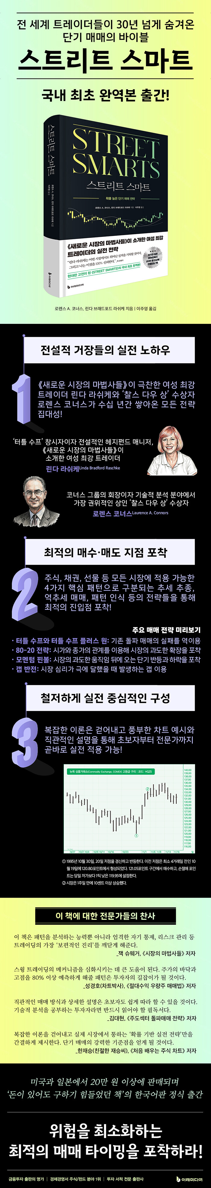 ¿À·£ ½Ã°£ ÁÖ½Ä, ä±Ç, ÆÝµå, ¼±¹° µî ÇöÁ¸ÇÏ´Â ¸ðµç Á¾·ùÀÇ ½ÃÀåÀ» °æÇèÇϸç ÁÂÀý°ú Èñ¿, ½ÇÆÐ¿Í ¼º°øÀ» üµæÇÑ 2¸íÀÇ À§´ëÇÑ ÅõÀÚÀÚ°¡ ¼ÕÀ» ¸ÂÀâ¾Ò´Ù. ¼¼°èÀûÀÎ º£½ºÆ®¼¿·¯ ¡¶»õ·Î¿î ½ÃÀåÀÇ ¸¶¹ý»çµé¡·ÀÌ ¼Ò°³ÇÑ ÃÖ°íÀÇ ¿©¼º Æ®·¹ÀÌ´õ ¸°´Ù ºê·¡µåÆ÷µå ¶ó½¬ÄÉ¿Í Å¹¿ùÇÑ ±ÝÀ¶ ±³À°°¡ ·Î·»½º A. Äڳʽº´Â ÀÌ Ã¥¿¡¼ ³²´Ù¸¥ ÅëÂû·Â°ú Á÷°üÀûÀÎ ¸Å¸Å¹ý ±×¸®°í ±×µéÀÌ Á÷Á¢ °í¾ÈÇÏ°í ¹ßÀü½ÃŲ ÆÐÅÏ ¹× Àü·«À» °£°áÇÏ°í ¾Ë±â ½±°Ô ¼Ò°³ÇÑ´Ù. ¡®Å×½ºÆ®¡¯, ¡®µÇµ¹¸²¡¯, ¡®Å¬¶óÀ̸ƽº ÆÐÅÏ¡¯, ¡®µ¹ÆÄ ¸ðµå¡¯¶ó´Â 4°¡ÁöÀÇ Å« ÆÐÅÏÀ¸·Î ±¸ºÐµÇ´Â ´Ü±â ¸Å¸Å Àü·«µéÀº Áö±ÝÀÇ ½ÃÀå¿¡ Àû¿ëÇØµµ ¼Õ»öÀÌ ¾øÀ» Á¤µµ·Î Á¤±³ÇÏ¸ç ³ôÀº ½Â·üÀ» º¸ÀåÇÑ´Ù. µ¶ÀÚµéÀº ÀÌ 4°¡Áö ÆÐÅÏÀ» ºñ·ÔÇØ ¿©±â¿¡ ¼ÓÇÏ´Â ¸Å¸Å Àü·«µéÀ» ¹è¿ì´Â °Í¸¸À¸·Îµµ ÇöÀçÀÇ ½ÃÀå »óŸ¦ ÆÄ¾ÇÇÏ°í ¼öÀÍÀ» ³»´Â ÃÖÀûÀÇ ¸Å¼ö¡¤¸Åµµ ÁöÁ¡ÀÌ ¾îµðÀÎÁö Æ÷ÂøÇÒ ¼ö ÀÖ´Ù. ¾Æ¿ï·¯ dzºÎÇÑ ¿¹½Ã Â÷Æ®¿Í »ó¼¼Çϰí Á÷°üÀûÀÎ ¼³¸íÀº µ¶ÀÚµéÀÇ ÀÌÇØ¸¦ µ½±â¿¡ ÃæºÐÇÏ´Ù. ¸¶Áö¸·À¸·Î µÎ ÀúÀÚ´Â ¼ö½Ê ³â¿¡ °ÉÄ£ ´Ù¾çÇÑ °æÇèÀ» ÅëÇØ °øÅëÀûÀÎ ÇÑ °¡Áö ¼º°ø ºñ°áÀ» ã¾Æ³Â°í ±×°ÍÀ» Áö¼ÓÇØ¼ °Á¶ÇÑ´Ù. ±× ¼º°ø ºñ°áÀº ¹Ù·Î, ½ÃÀåÀÇ ¸ñ¼Ò¸®¿¡ ±Í ±â¿ïÀ̸ç ÀÚ½ÅÀÇ ÀÇÁö¸¦ ½ÃÀå¿¡ °¿äÇÏÁö ¾Ê´Â °ÍÀÌ´Ù.